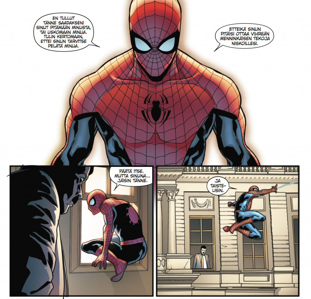 Hämähäkkimiehen toimittajan, Tri Tuomion ja toivottavasti lukijoidenkin suosikiksi muodostunut viimeisin pitkä Hämähäkkimies-saaga on nyt saatettu kunnialliseen päätökseen. Otto Octavius ei siis enää heilu Hämähäkkimiehenä Peter Parkerin viruessa haudassa, limbossa tai oman syrjäytetyn mielensä sokkeloissa. Sen verran merkittävä käännekohta onkin nyt kyseessä, että se ansaitsee hieman kuvioita avaavan blogijuttunsakin, eiks jeh?