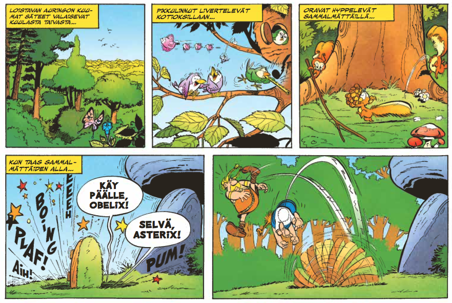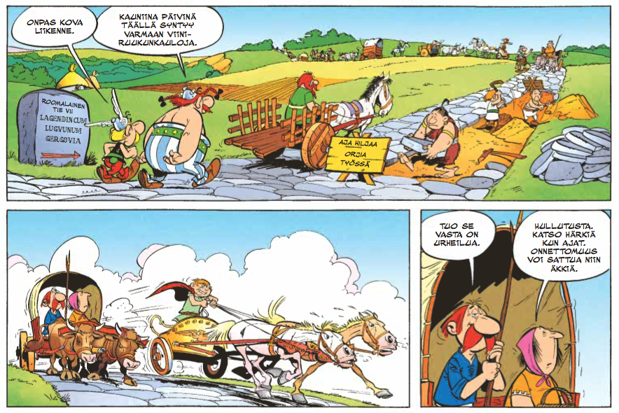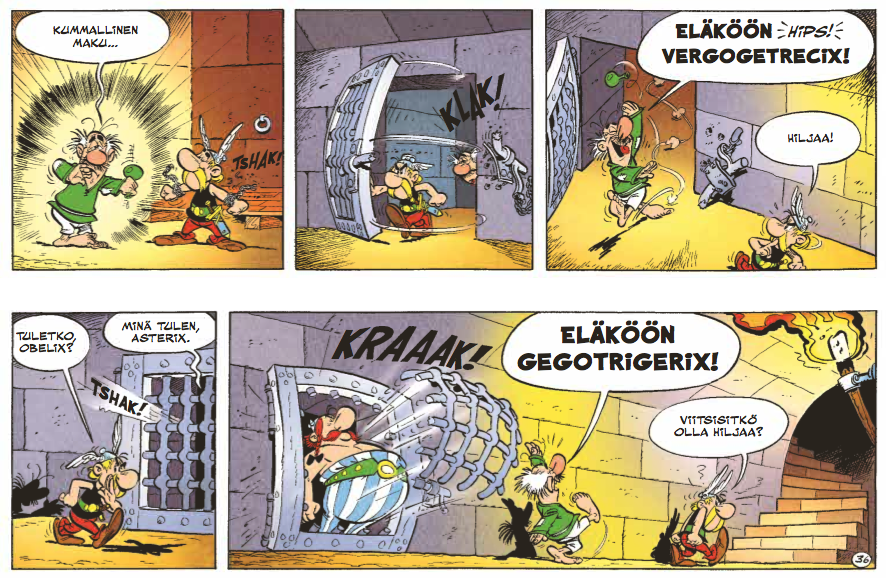 Ensimmäisen kerran tarina näki päivänvalon Piloten sivuilla vuonna 1960 ja albumiksi koottuna se ilmestyi 1962. Suomennoksen aika koitti 1971. Lieneekö aikalaislukijoita hämmentänyt hahmojen ulkonäön yllättävä taantuminen, tiettyjen kyläläisten kohdalla jopa täydellinen muuttuminen, ja tarinankin tarpominen Asterix-mittarilla hieman yksinkertaisemmalla ladulla? Luultavasti kyllä. Allekirjoittanut ei tiedä, koska kummitädin Asterix-kokoelmaan perehtyminen alkoi vasta 80-luvun alussa ja nuori sarjakuvaintoilija ei kiinnittänyt moisiin yksityiskohtiin isommin huomiota. Muistan kuitenkin asiaa kummastelleeni. Albumi nauratti kuten muutkin Asterixit ja muutamakin ruutu siitä on etsattu pysyvään muistiin. Eli niitä sitten selitetään vanhainkodissakin ruohonkorsien tarkkuudella jo ammattinsakin puolesta toivottavasti loputtoman kärsivälliselle hoivarobotille.