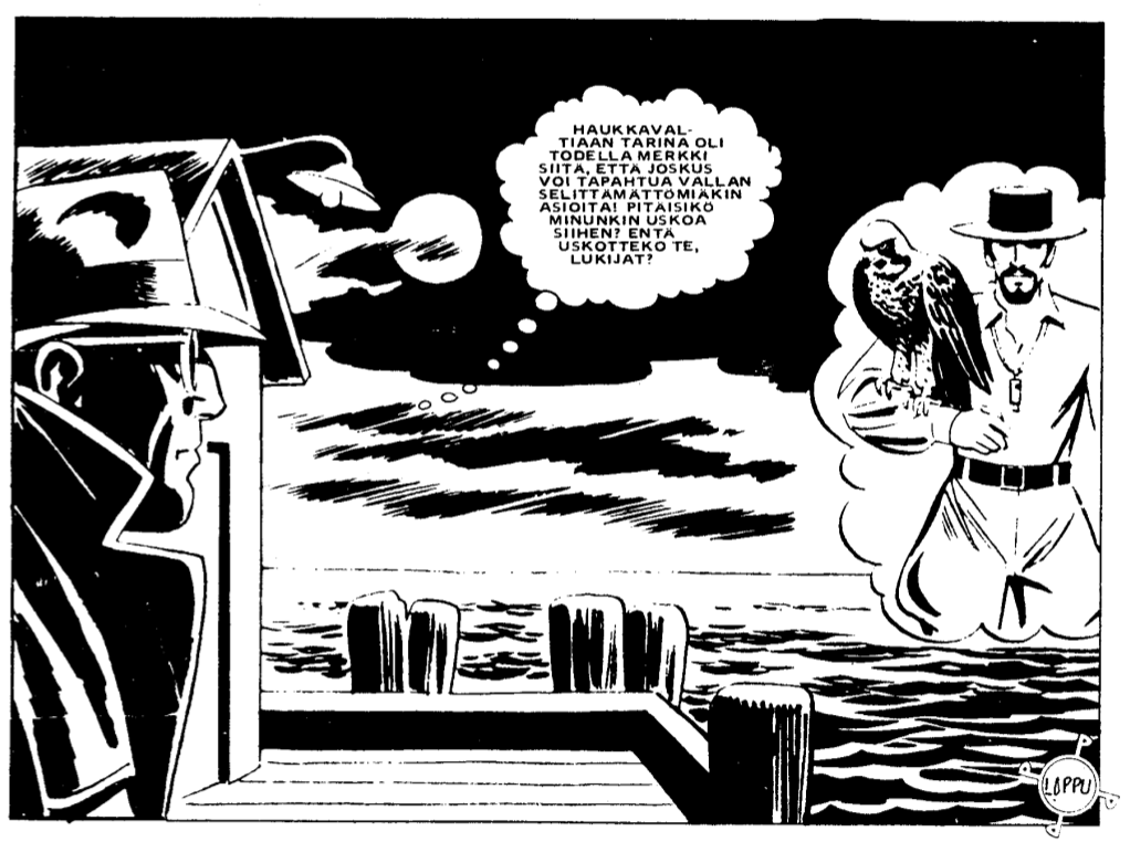 Haukkavaltias on kuullut viidakon sananlaskun, jonka mukaan hyvä tarina ei noudata fysiikan lakeja. Mustanaamiolla onkin paljon kummasteltavaa tämän kostajan edesottamuksia seuraillessaan. Onko Haukkavaltias edes konna?