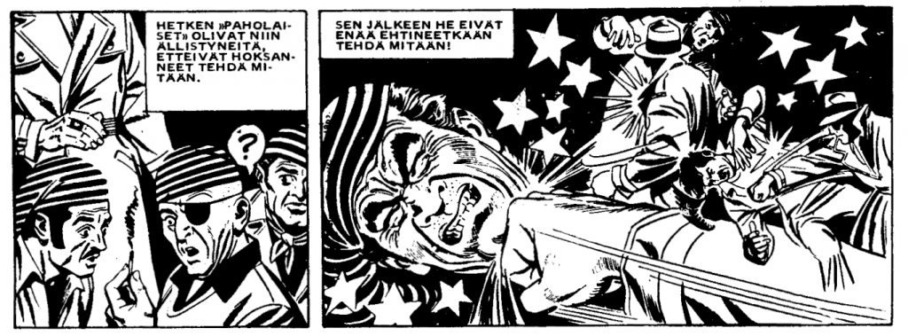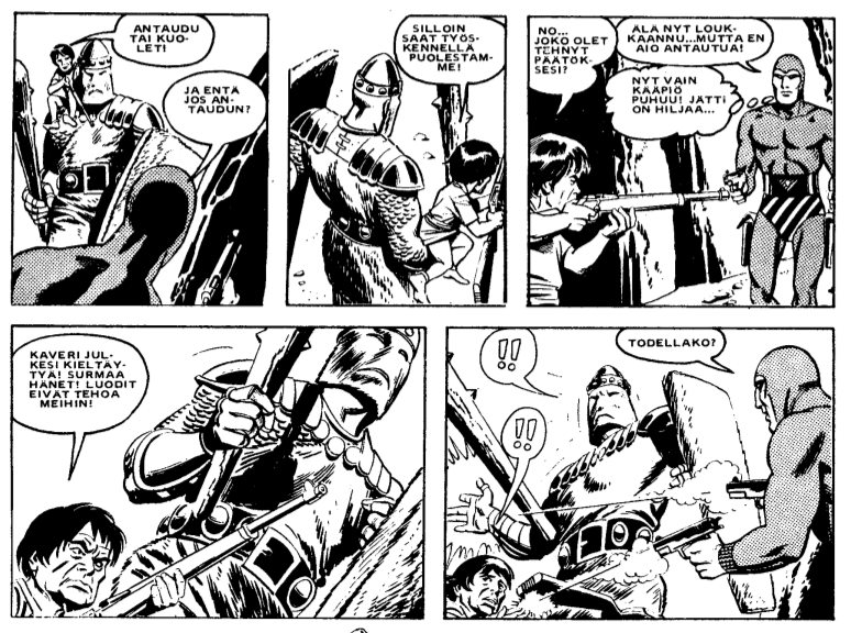 Mustanaamion seikkailut ovat siis villiä ja kahlitsematontakin luovuutta pullollaan, mutta sarjan perusta on valettu sen verran vankasta graniitista, että tahallisen ja tahattomankin ilottelun sekaan mahtuu jyhkeän ikonista toimintasarjakuvataidetta vähintäänkin lääkärin määräämä annostus.