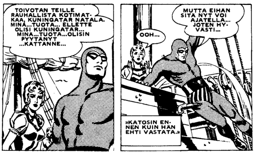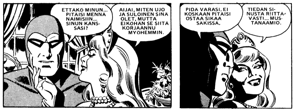 Naiskauneutta ei muutenkaan säästellä, vaan Mustanaamio joutuu sekä pelastamaan että pakenemaan kaunottaria mukavan säännöllisesti. Voisimme palata näihin kaunottariin vielä kesällä, mutta nyt siirrymme konnagalleriaa kummastelemaan. Kaunottarien ohessa sinne mahtuu monenlaista vipeltäjää, ja tässä on muutama erityisen mieleenpainuva.