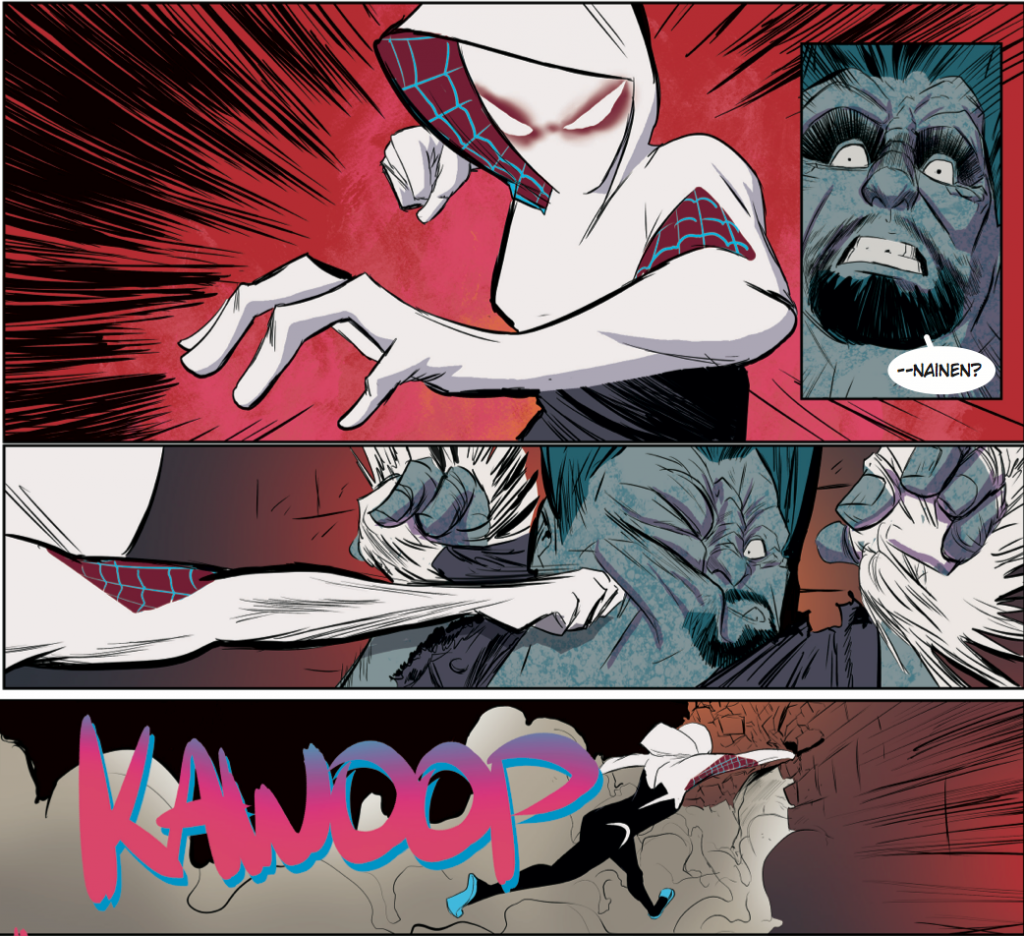 Joka tapauksessa numero 7/2017 on mitä mainion paikka hypätä Hämiksen kyytiin. Hämähäkkiversumin henkilökatras esitellään kuin varkain ja numerossa 8/2017 tutustumme tarkemmin myös fanisuosikki Hämähäkki-Gweniin. Kyllä. Gwen Stacy Hämähäkkinaisena. Toimii.