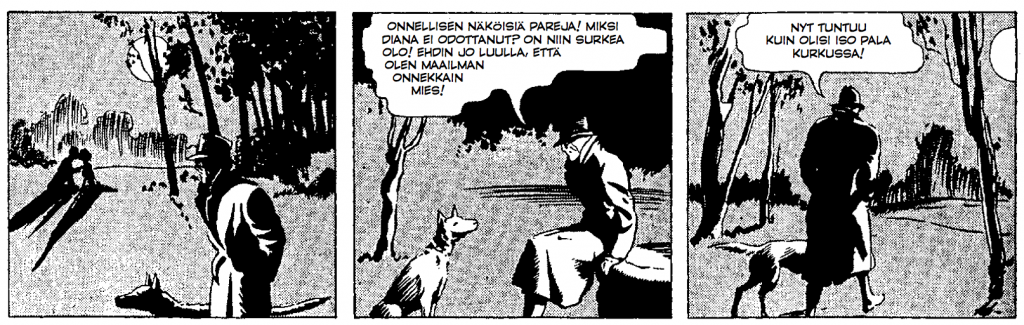 Toisaalta seikkailijan veri tuntui vetävän sankariamme erikoisiin tilanteisiin. Esimerkkinä vaikkapa tämä omista häistä myöhästyminen, kun konnan kurittaminen meni laivaan ehtimisen edelle.