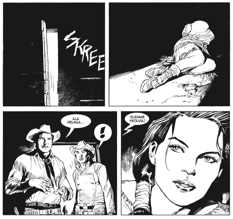 Texeissä on yleensä yksi kaunotar per tarina, jos sitäkään, mutta tällä kertaa Boselli ja Andreucci ovat olleet hövelillä tuulella. Tämä apassikaunotar vie varmasti mieslukijoiden sydämet. Ainakin Tex kumppaneineen on helisemässä.