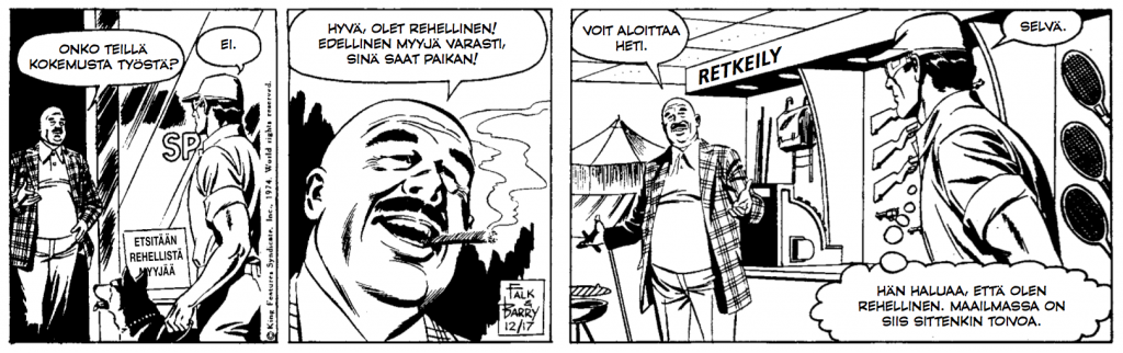 Miten sujuvatkaan Mustanaamiolta myyjän hommat?