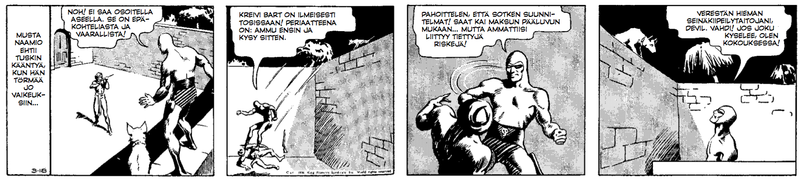 Aloittakaamme toiminnasta – Mustanaamion alkuaikojen lakonisesti räjähtävässä toiminnassa on selittämätöntä imua. Taidesarjakuvan erikoismiehet joutuvat oikeasti näkemään vaivaa päästäkseen näihin tunnelmiin.
