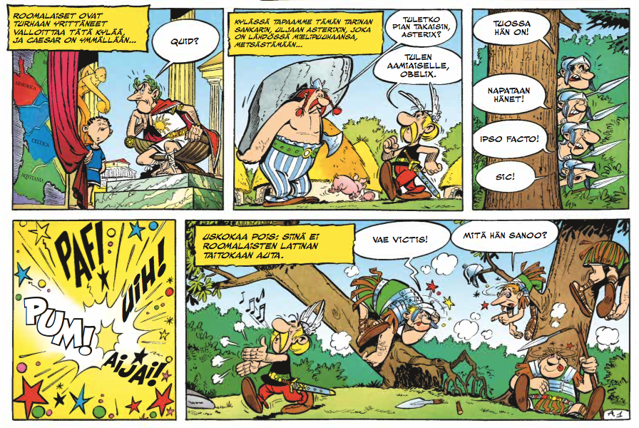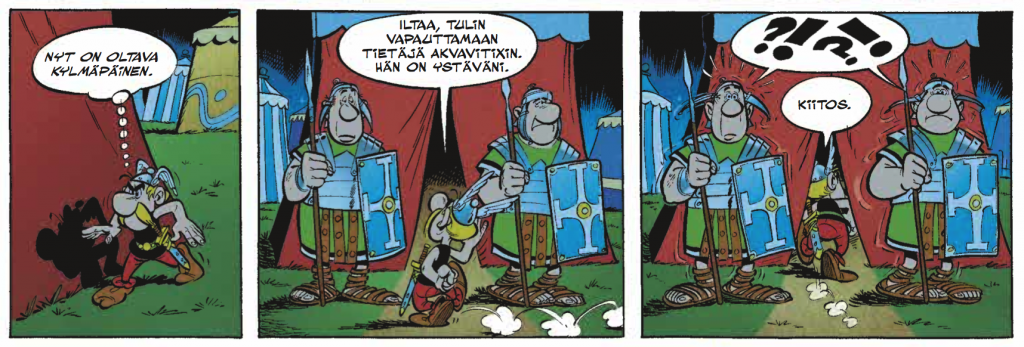Ensimmäisessä Asterixissa moni nykyisin tuttu asia hakee vielä muotoaan. Esimerkiksi Caesarin ulkonäkö muuttuu tämän seikkailun aikana. Obelix on vielä sivuhahmo. Akavavitix asuu luolassa. Idefixiä ei ole olemassa… Tämä tekee albumista myös penteleen mielenkiintoisen, varsinkin jos fiktiivisten maailmojen rakentaminen ja rakentuminen kiinnostaa. Sama pätee toki hahmojen luomiseenkin. Ja taiteeseen. Mitkä reunat pyöristyvät… Mitkä terävöityvät… Mitkä hahmot säilyvät… Mitkä hahmot lähtevät kehittymään… Mitkä hahmot ennakoivat tulevia hahmoja…