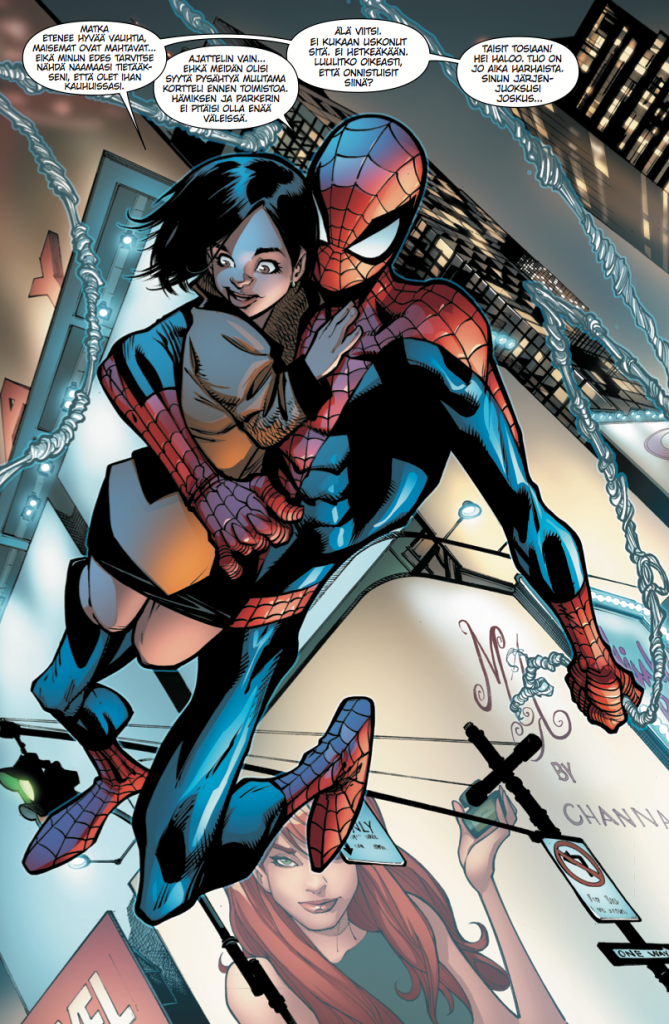 Onneksi avovaimo Anna Marconi on täydellinen partneri sekä Peter Parkerille että Hämähäkkimiehelle. Olkoonkin Octaviuksen löytö, mutta ainakin tämä lukija soisi jo sankarimme näkevän valon ja Annan ihanuuden. Arvostamme toki käsikirjoittajien neuvokkuutta lukijan rääkkäämisen jalolla saralla tässä kohtaa. Täydellinen tyttöystävä ja päähenkilön sokeus tälle, kimurantilla twistillä. Toimii.