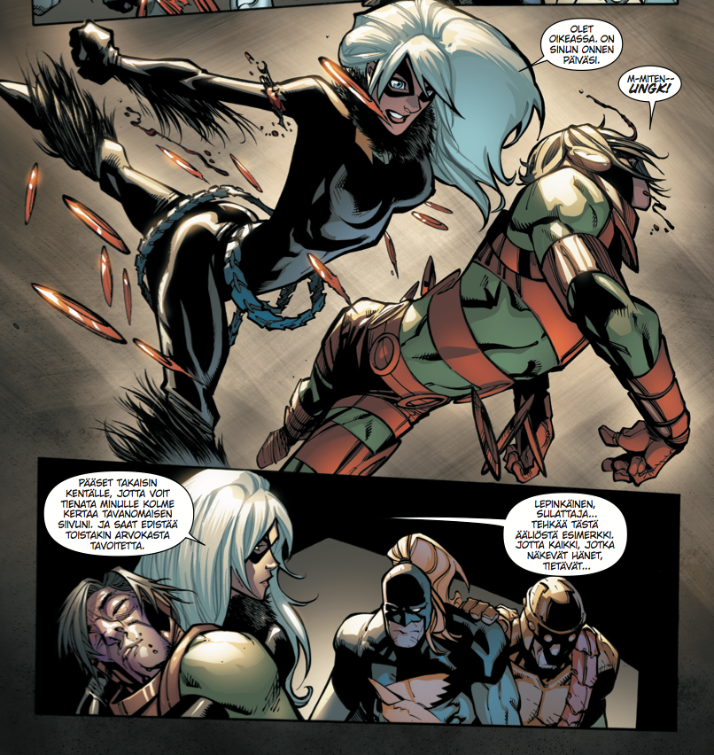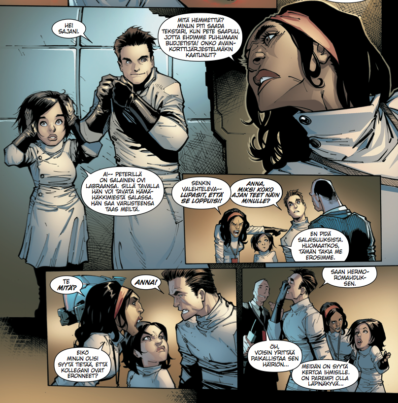 Yritystäkin pitäisi Peterin pyöritellä. Parker Industriesin toimarina toimiminen kärsii pahasti kahakoinnista konnien kanssa. Peterissä olisi ainesta Elon Muskin kaltaiseksi keulakuvaksi, mutta hänpä on lähinnä poissaoleva keulakuva. Tästä on luvassa rankempaakin ripitystä yhtiökumppaneiden taholta. Sajanikin on muuten hieno hahmo. Olisikohan kässärivelho Dan Slottilla vielä ässä tai kaksi hihassa silläkin rintamalla?