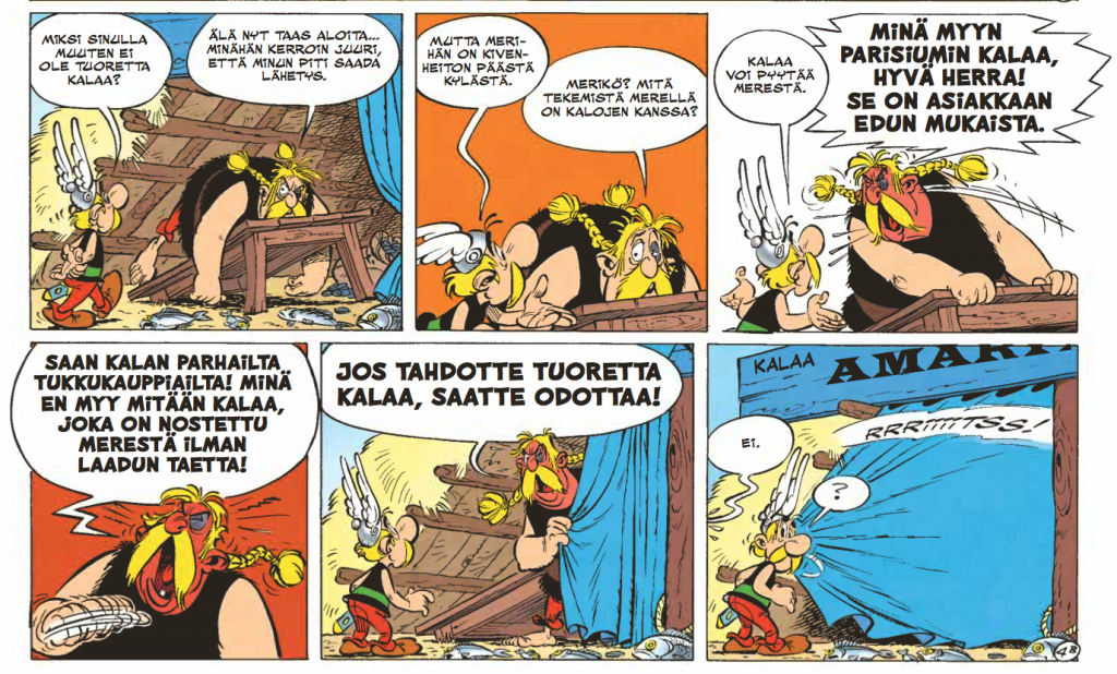 Albumi heittää sankarimme valtameren yli melkoisen vähillä eväin. Akvavitix tarvitsee tuoretta kalaa voimajuomansa valmistukseen, kalakauppiaalta ei suostu sitä myymään ja sankarikaksikkomme lähtee myrskyn keskelle kalastamaan. Arvattavin seurauksin.