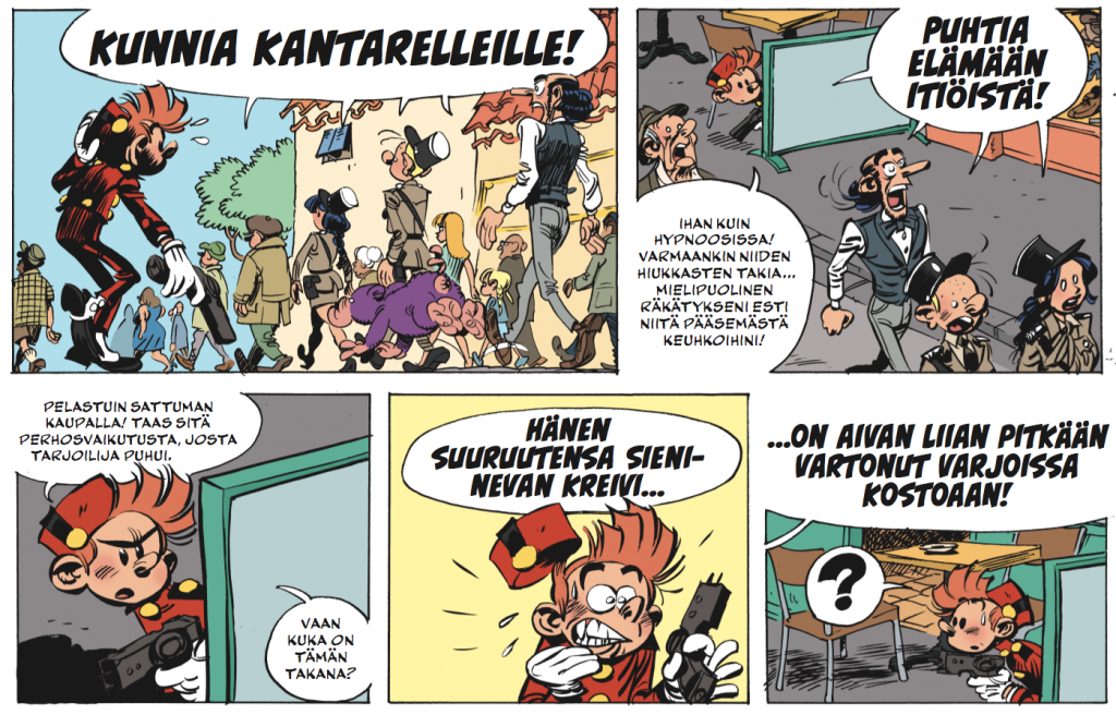 Toisena tarinana tarjoillaan Ikuinen pikkolopoika, joka on aikaisemmin juhlistanut Pikon 75-vuotisjuhlaa. Spiroun toimituksella on siis juhlat ja naamiaisteeman mukana pääsemme ihailemaan hupaisia versioita useistakin tutuista sarjakuvahahmoista. Näiden sekaan on livahtanut muutama mielisairaalasta karannut taho, joiden jahtaamisesta tarina saa varsinaisen polttomoottorinsa.