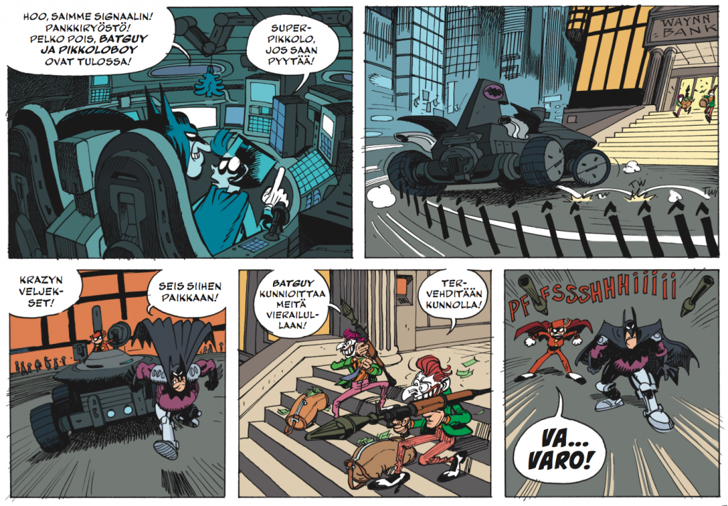 Batguy johdattaa vie Pikon vierailulle rapakon taakse. Kyläilyä isännöin Bruce Waynn, jonka mukana pääsemme jahtaamaan rikollisia amerikkalaiseen malliin. Luvassa on siis isoja tykkejä ja roppakaupalla sarjatulta. Ja sangen kipakkaa kommentointia amerikkalaisen supersankaruuden arvomaailmasta.