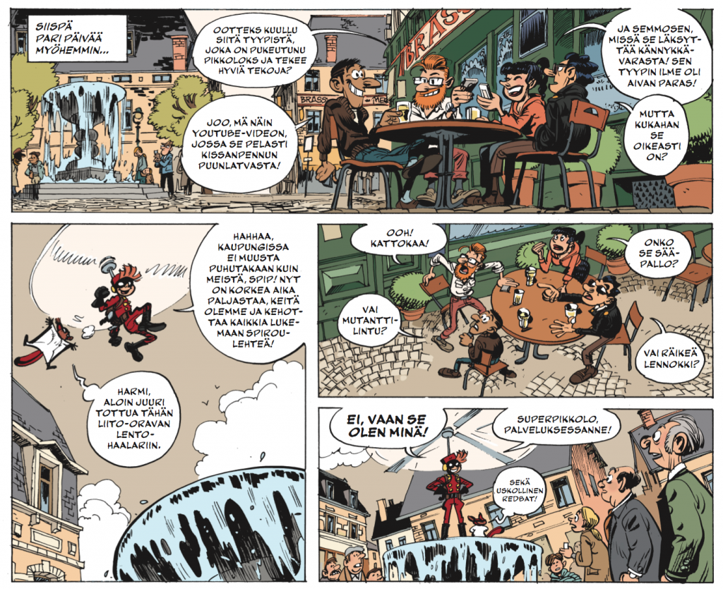 Pohdinta supersankaruudesta jatkuu myös albumin viimeisessä seikkailussa Superpikkolo pelastaa, jossa Piko ja Spip ryhtyvät naamioituneiksi supersankareiksi. Sankaritekoja tapahtuu, mutta kaikki menee myös sangen hupaisalla tavalla pieleen. Näillä main realismi iskee näpeille jopa huumorisarjakuvissa, jos hybris uhkaa karata hyppysistä.