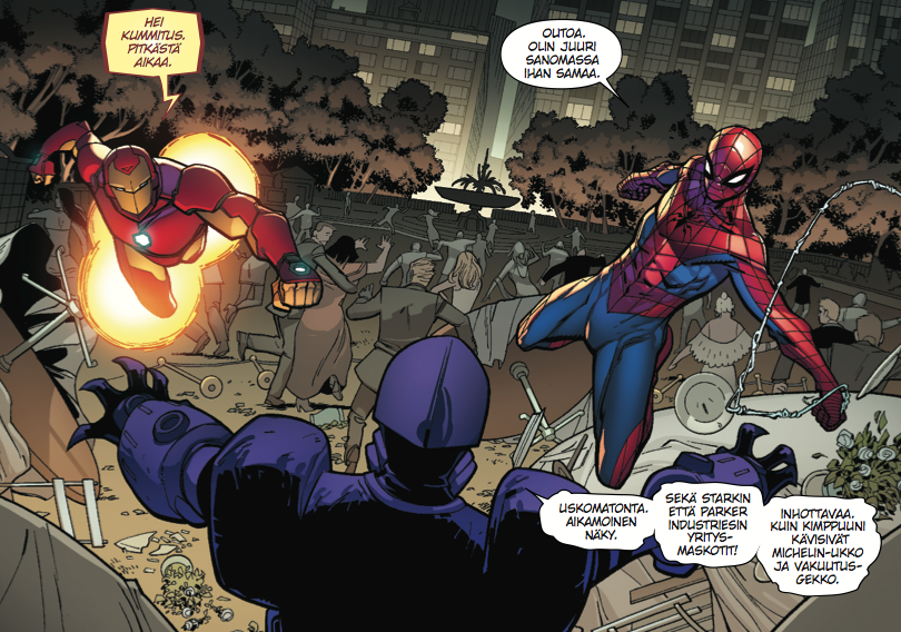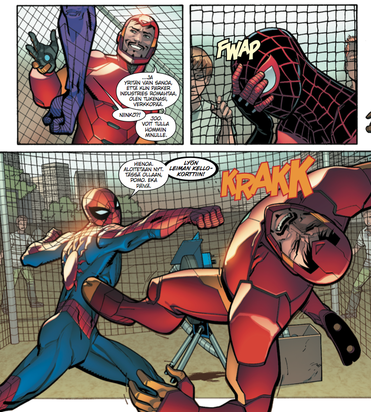 Eli jos Hämiksen kärryiltä on päässyt putoamaan, niin nämä numerot tarjoavat oikein mukavan kohdan hypätä takaisin kyytiin. Marvelin supersankariherkkua on tarjolla kahdella eri visuaalisella ilmeellä ja osaavan kirjoittajan taidokkaasti juonimana. Seittisankarimme vahvuuksien ja heikkouksien välillä tasapainotellaan mehukkaasti, ja molemmat tarinat etenevät sekä pienissä että isoissa harppauksissa kuin höyryjuna! Vierailevia tähtiä ja cameoita piisaa bongattavaksi! Suositus sekä Marvel-nörteille että vasta-alkajille!