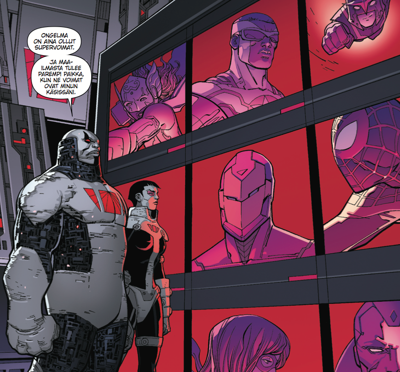 Tappeluksen taustalla varsinainen juoni etenee vääjäämättä kohti traagisempia tunnelmia, kun Regent ryhtyy asettelemaan pelinappuloitaan omalta kannaltaan oikeaan järjestykseen. Dan Slott vastaa Ylivoimapelin ensimmäisen osan juonesta ja Giuseppe Camuncoli taiteesta.