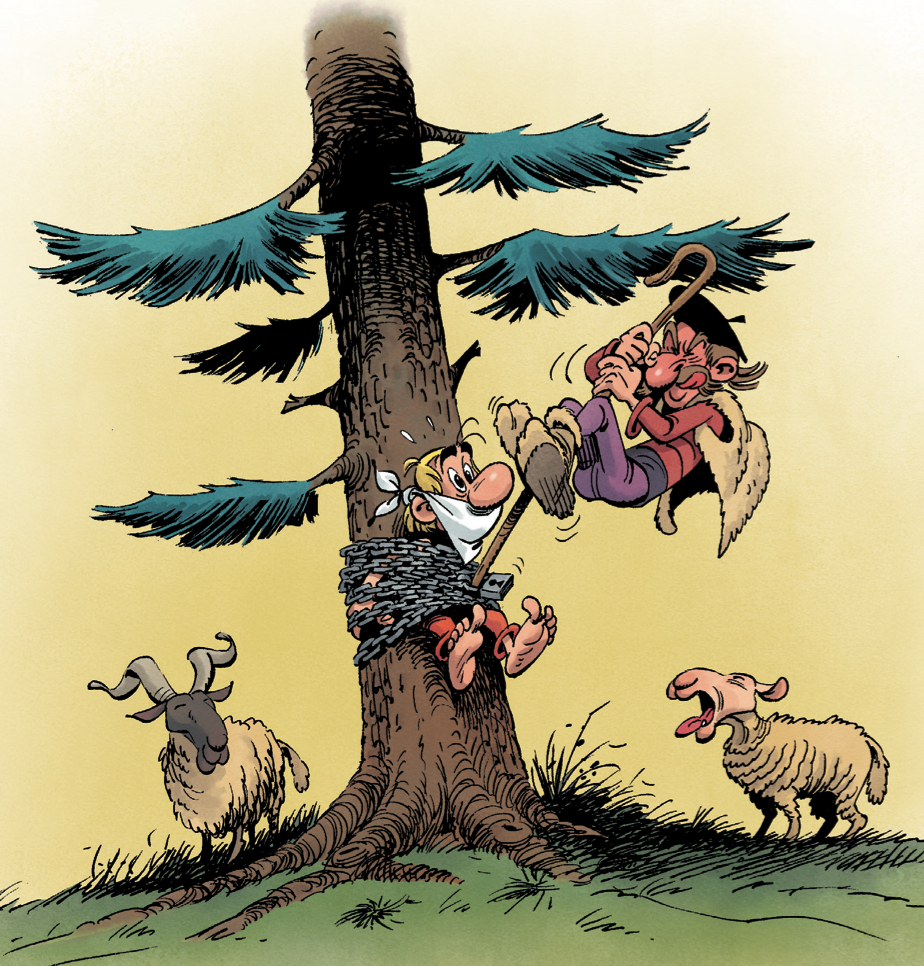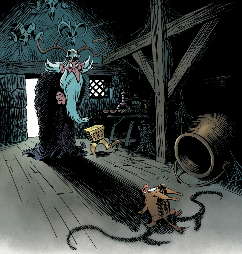 Sarjakuvastahan ei tällä kertaa ole siis kyse. Taidekirjan ja novellimuotoisen elokuvasovituksen risteytys lienee lähinnä totuutta. Eli leppoisaa tarinointia kauniilla silmäkarkilla. Paljastettakoon tarinasta noin saman verran kuin elokuvan trailerissakin. Akvavitix siis putoaa puusta ja toteaa kylänsä tarvitsevan tietäjän siltä varalta, että hänelle tapahtuu jotain.