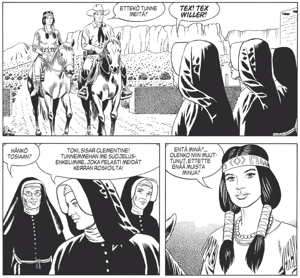 Lilythin salaisuus aloittaa menneiden muistelun. Mauro Boselli kässäröi ja Fabio Civitelli hoitaa visuaalisen osaamisen, joten fanisuosikit ovat tämän tarinan ruorissa. Pääsemme ihmettelemään todella harvinaista herkkua, sillä tarjolla on Lilythin ja Texin yhteinen seikkailu. Nunnaluostarilta käynnistyvä seikkailu vie rakastavaiset hieman vähemmän rehellisen menneisyyden omaavan munkin kätkemän ryöstösaaliin jäljille. Ryöstösaaliin perässä on muitakin tahoja, joten sekä Tex että Lilyth pääsevät esittelemään taitojaan konnien kurmoottajina. Tiivis toimintapaketti Texin historiasta kiinnostuneeseen makuun.