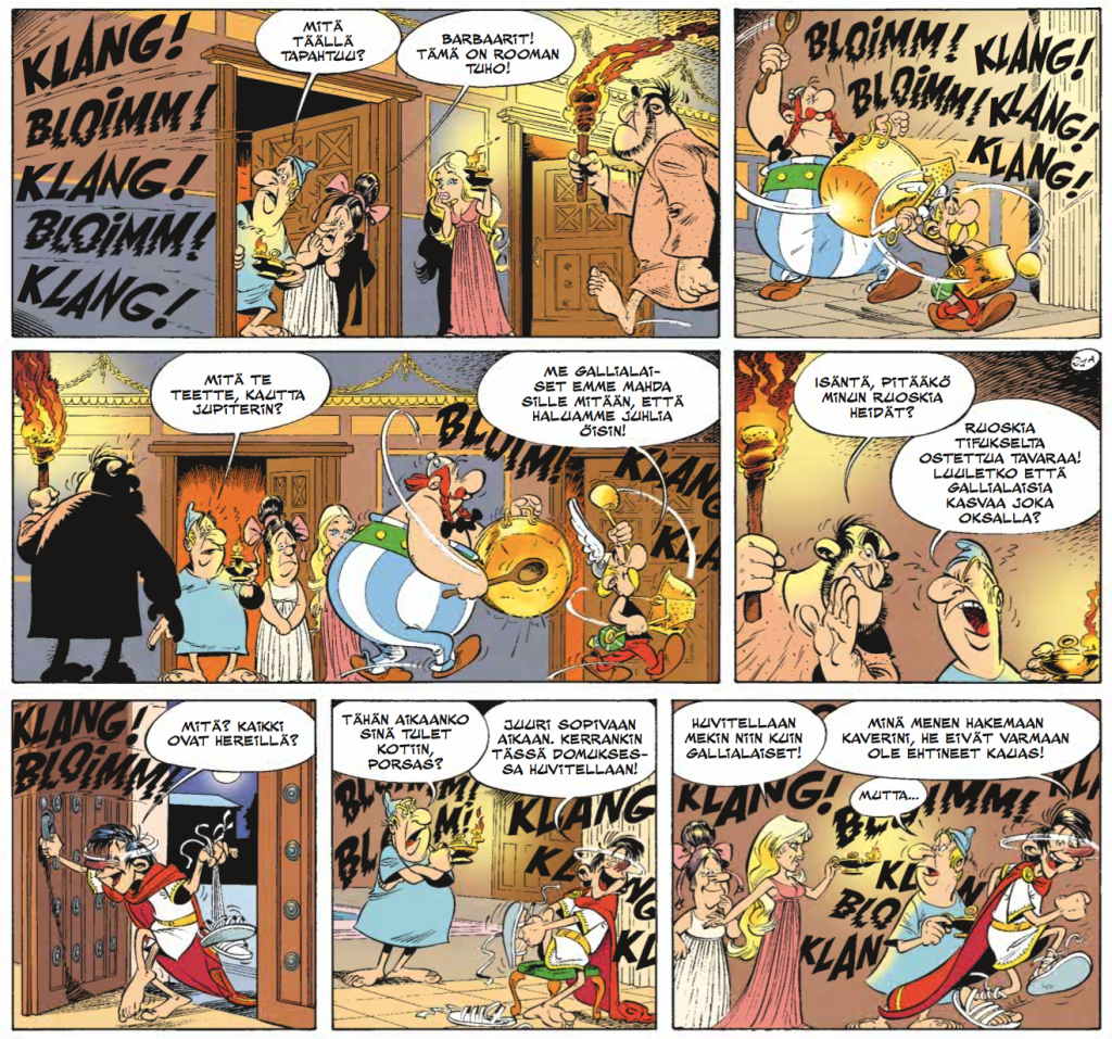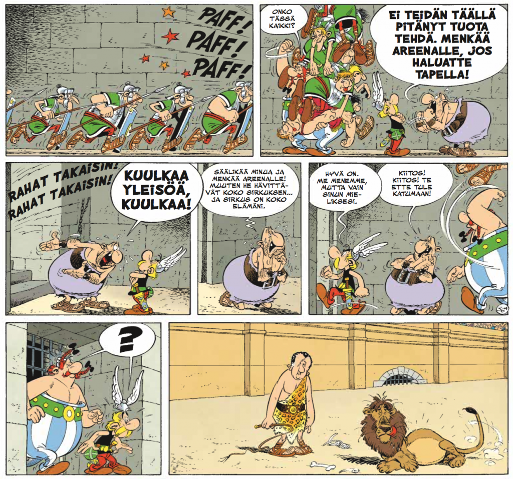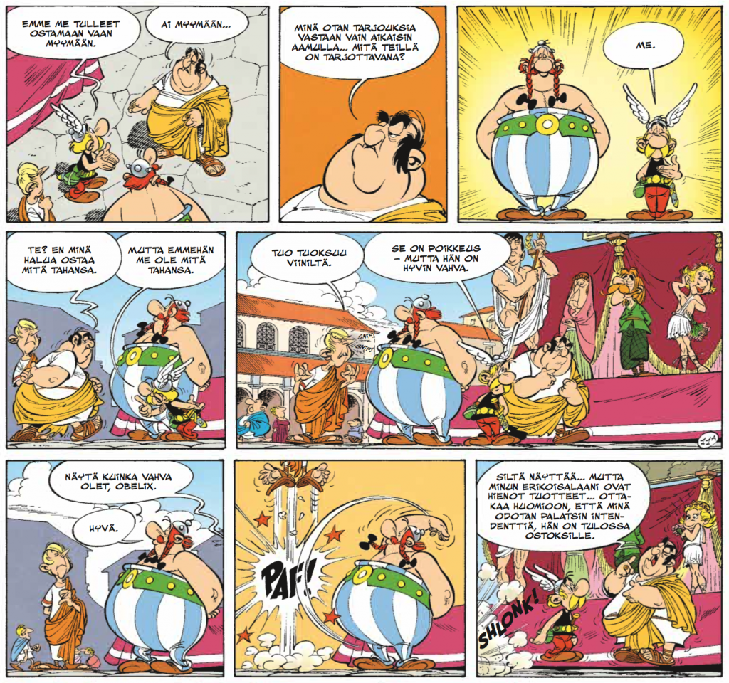 Orjuus onneksi alkaa olla mennyttä aikaa, mutta Asterixin, Obelixin ja orjakauppiaan sananvaihto on ikuista.