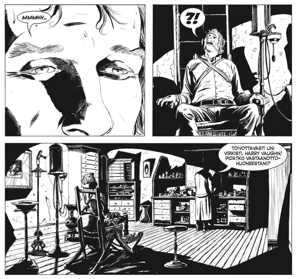 Rima on korkealla luonnollisesti myös Tex-suuralbumin kuvittajiksi päässeillä sarjakuvataiteilijoilla. Mauro Boselli takaa aina laadun, mutta Zuccheri kuvittajana on tainnut tarjota maestrolle tervetullutta lisähaastetta, sillä esimerkiksi näin tulisia ja sielukkaita naishahmoja ei usein seikkaile Texin sivuilla. Big Nose Kate uhkaa varastaa show’n, vaikka albumin moottorina toimiikin Doc Hollidayn historia. Seikkailu käynnistyy, kun salaperäinen hammaslääkäri alkaa harventaa Earpin veljesten ja Doc Hollidayn vanhojen verivihollisten rivejä.