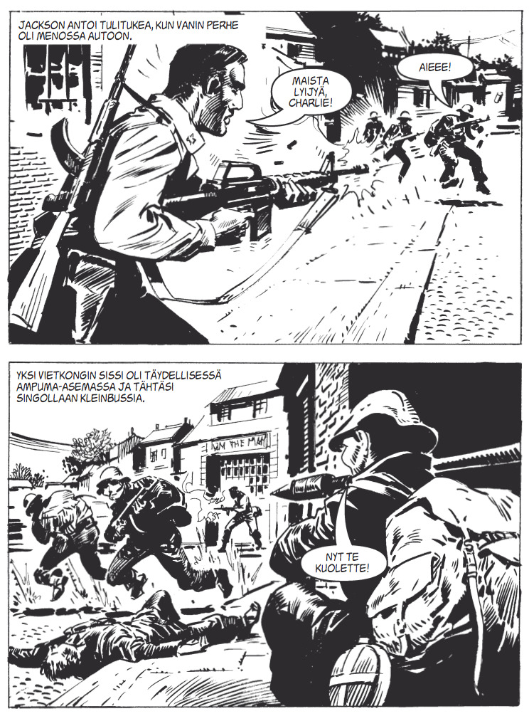 Kolmas tarina Pako Saigonista singauttaa meidät toiselle puolelle maailmaa ja tunnelmasta toiseen, eli suurkaupungin kuumiin katutaisteluihin. Saigon on murtumassa ja Davis hoitaa tarinoinnin tälläkin kertaa. Kuvittajana tykittelee Manuel Benet.