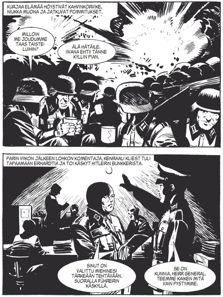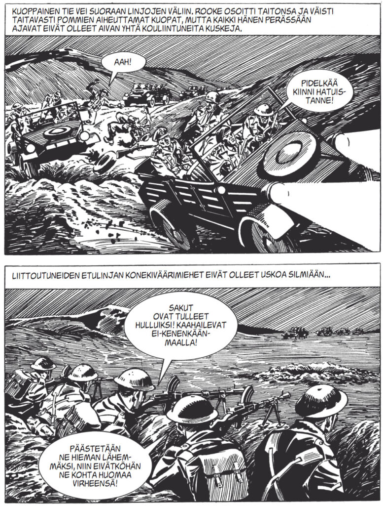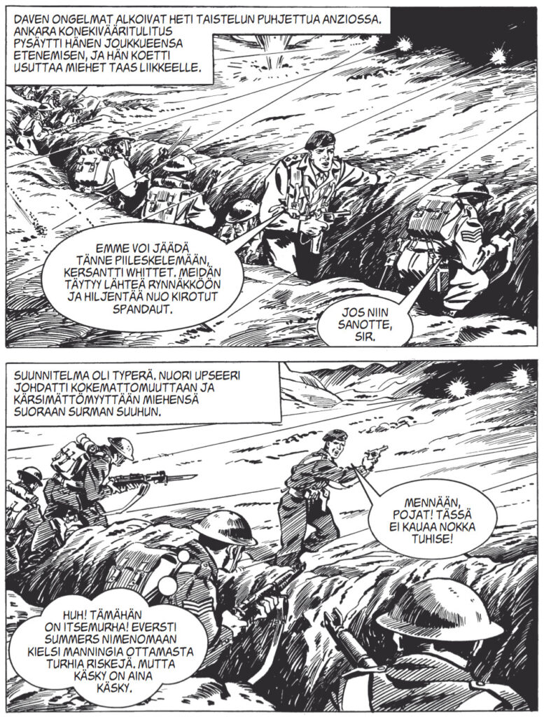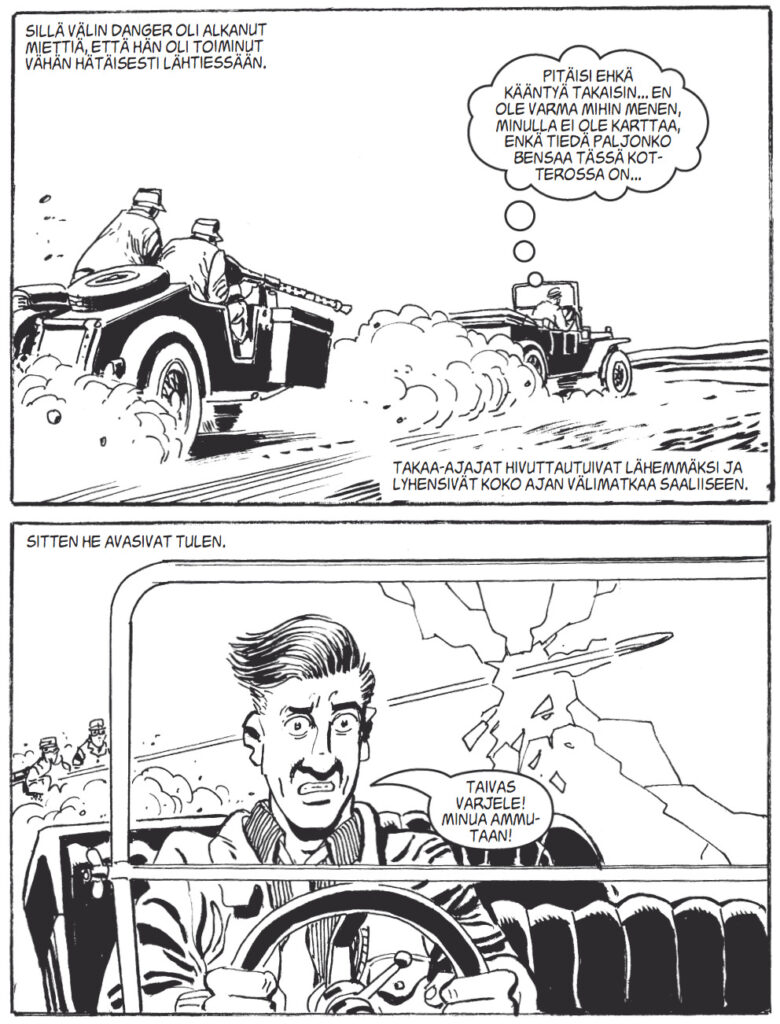 Operaation Omega toimii tässä vaiheessa salassa omiltaankin, sillä poliittista tahtoa natsien varpaille asteluun ei vielä löydy. Ammattisotilaan sijaan Finch saakin aisaparikseen hullun neron nimeltä Ulysses ”Danger” Doyle. Kuinka täysi siviili sukeltaa salaisten sotatoimien keskelle? Melko sutjakasti, tai ainakin viihdyttävästi! Stephen Walsh tarinoi ja Keith Page hoitaa kuvataiteen. Jos Don Rosa piirtäisi Korkkarin, niin jälki saattaisi näyttää tältä. Ainakin allekirjoittaneesta herrojen Rosa ja Page kuvakerronnassa on paljon samaa. Tämä mielipide on kuitenkin täysin epätieteellinen ja vapaasti kyseenalaistettavissa.