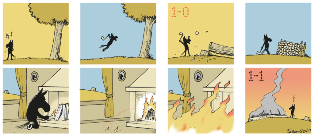 Samson on hyvä leikkittelemään ruutujaolla. Strippien introtkin ovat oma bonusvitsien runsaudensarvensa, mutta niistä nauttiakseen pitää sijoittaa tähän albumiin. Tai lukea se kirjastossa. Tai kaivaa Suomen Kuvalehdet esiin.