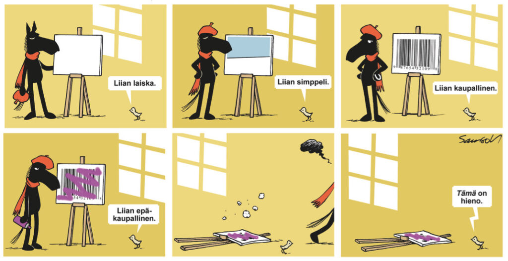 Edellä mainituissa introissa viittaillaan maalaustaiteen klassikoihin taajaan ja sukkelasti, mutta onnistuupa taiteen tuottaminen sukkelahkosti Heikki H. Hevoseltakin!