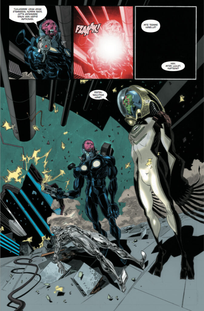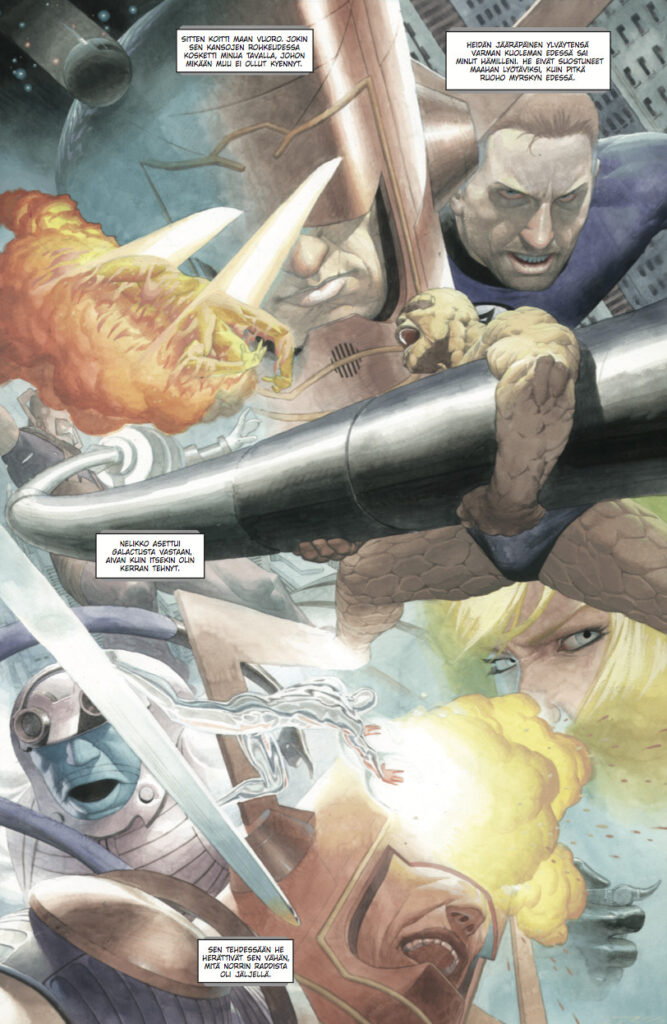Summa summarum: Neljä eeppistä seikkailua Marvelin malliin. Allekirjoittaneen suosikki näistä tarinoista on aina se kulloinkin kesken oleva, joka ehkä omalta osaltaan puhuu tämän kokelman kautta linjan korkeasta tasosta. Silmäkarkkipainotteinen avaruuskohkaus vaihtuu arvonsa tuntevaan tragediaan sulavasti, eikä kummastakaan tule ähkyä. Todellisuuspakoilu onnistuu, mutta angstaajillekin on säkillinen murehdittavaa. Kovat kannet kruunaavat kosmisen paketin!