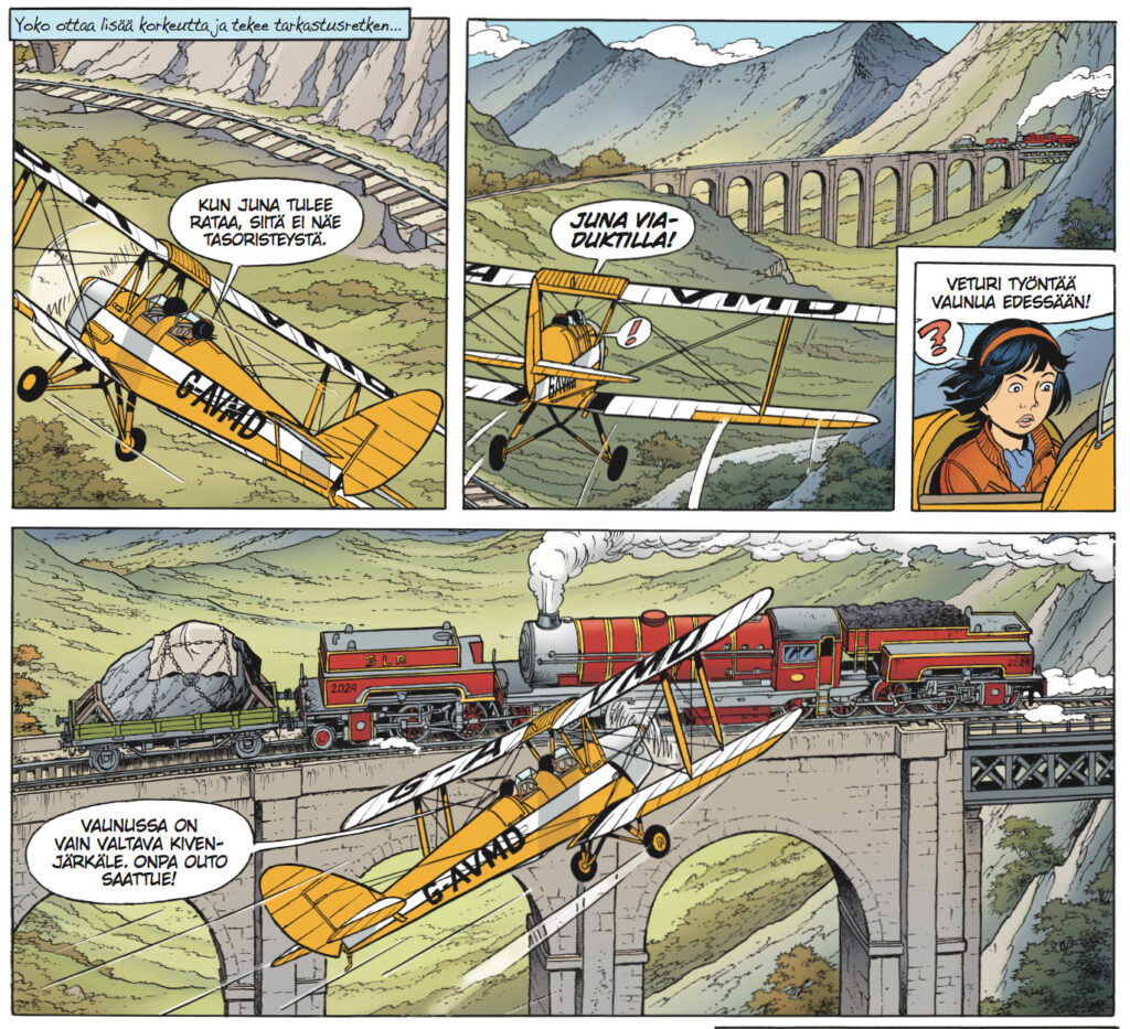 Loppukaneetiksi toteamme Roger Leloupin pakanneen tähänkin seikkailuun kaikki ne maagiset ainesosat, jotka tekevät Yoko Tsunon seikkailuista Yoko Tsunon seikkailuja. Nostalgisissa tai futuristisissa moottoriajoneuvoissa ja voimakkaissa naishahmoissa ei säästellä, eikä tarinapuolellakaan valita suorimpia mahdollisa linjoja, eli lukijalta vaaditaan tarkkaavaisuutta ja hoksottimia kärryillä pysymisen varmistamiseksi. Älykkötoimintaa retrofuturistiseen makuun tuunattuna tarjolla siis. Haukkoja ja enkeleitä juuri nyt sarjakuvakaupoissa kautta maan!