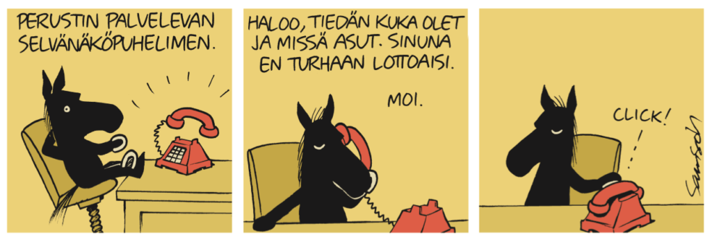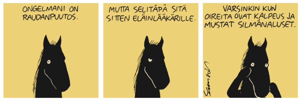 Mustaa hevosta on siis hyvä pitää hyllyssä täysin kokoelma, sillä pahan päivän varalle on hyvä varautua pahan päivän huumorilla. Ja jos 2020 on vain esimakua tulevasta, niin pahoihin päiviin kannattaa todellakin varautua. Hymyssä suin ja sarjakuva-arsenaalia kartuttamalla, tietenkin.