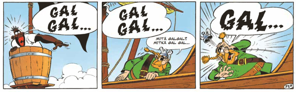 Roomalaisten lisäksi kovaa kohtelua joutuvat kokemaan myös merirosvot. Asterix ja Obelix eivät tosin tällä kertaa ole vastuussa laivan upottamisesta. Knoppitieteilijät voivat kiinnittää huomionsa myös Akvavitixin toimiin. Asterix-tietokilpailussa saattaa olla pisteitä luvassa, jos tekee niin.