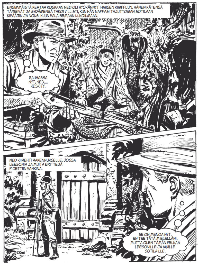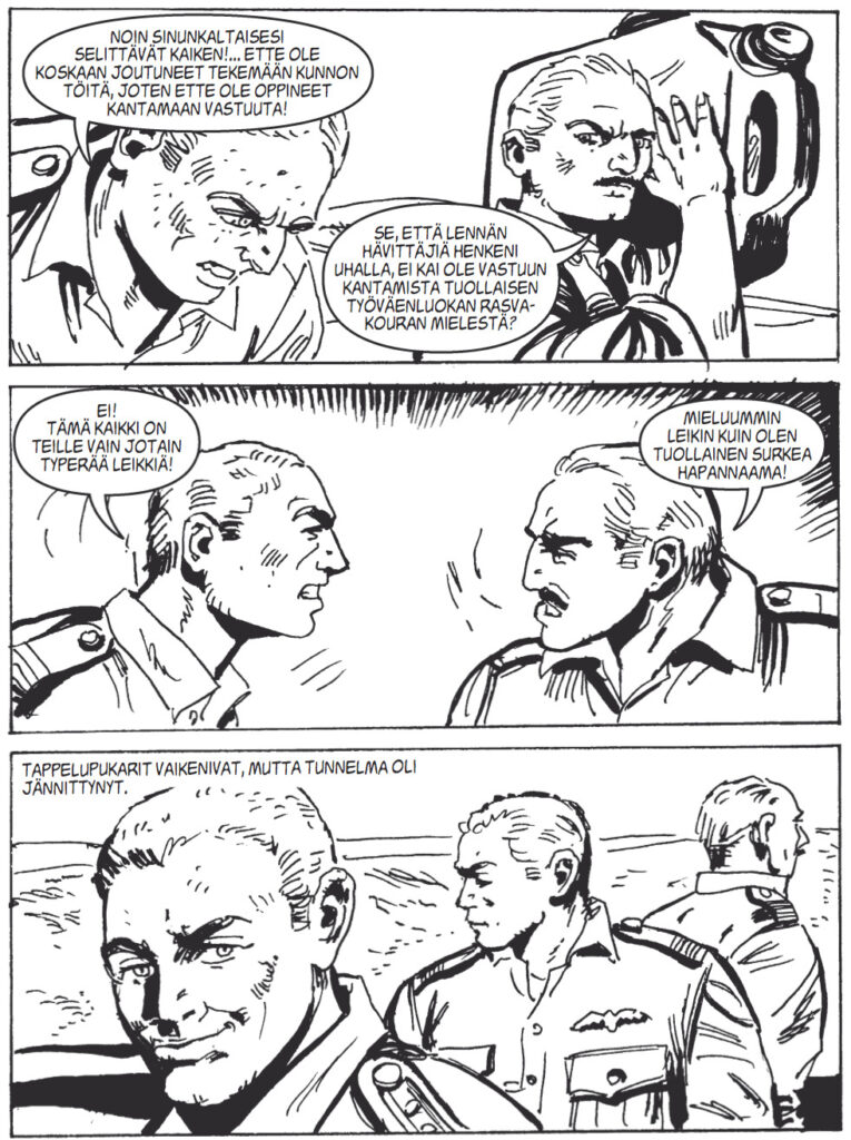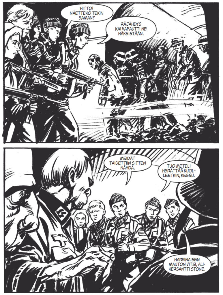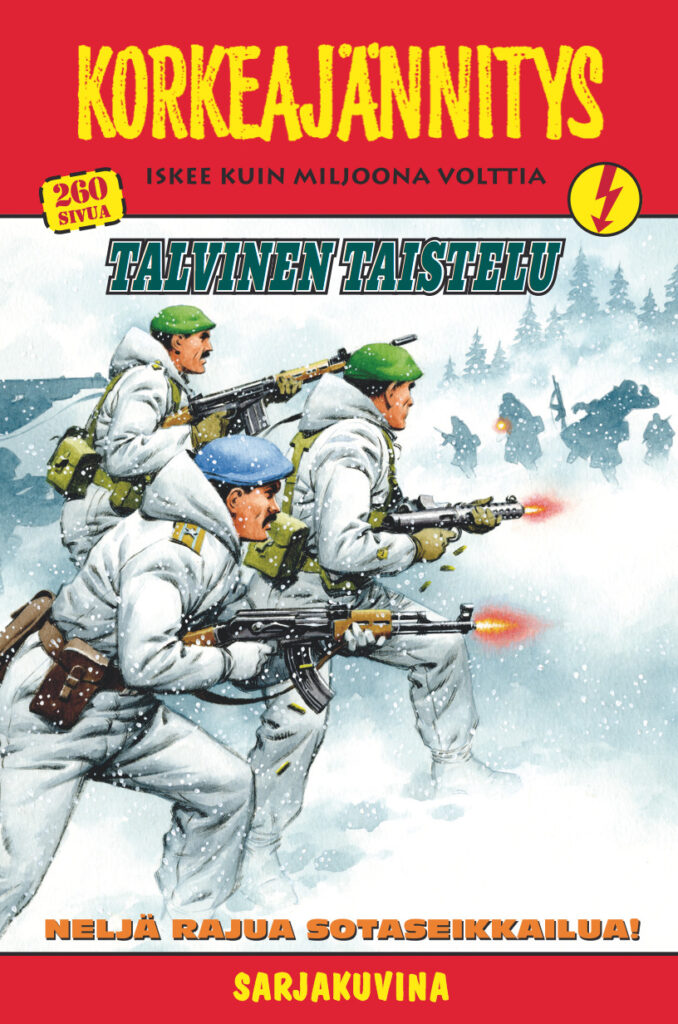 Aurinko paistaa lähes pilvettömältä taivaalta, mutta pakkanenkin tykittelee melko kunnianhimoiset lukemat mittariin. On siis mitä mainioin sää ulkoilmassa reippailulle, mutta jos pakkasessa puhkuminen ei jostain syystä napostele, niin aina voi kääriytyä viltin uumeniin sarjakuvia kuluttamaan. Napataanpa lukuvinkkimielessä tämän tarinatalon tuoreimmasta sadosta vuoden ensimmäinen Korkeajännitys kouraan ja kurkistetaan sen konepellin alle. Luvassa on sotaviihdettä laajalla skaalalla – Stukia aavikolla, zombeja Norjassa, raunioita viidakossa ja sissitoimintaa Siperiassa!