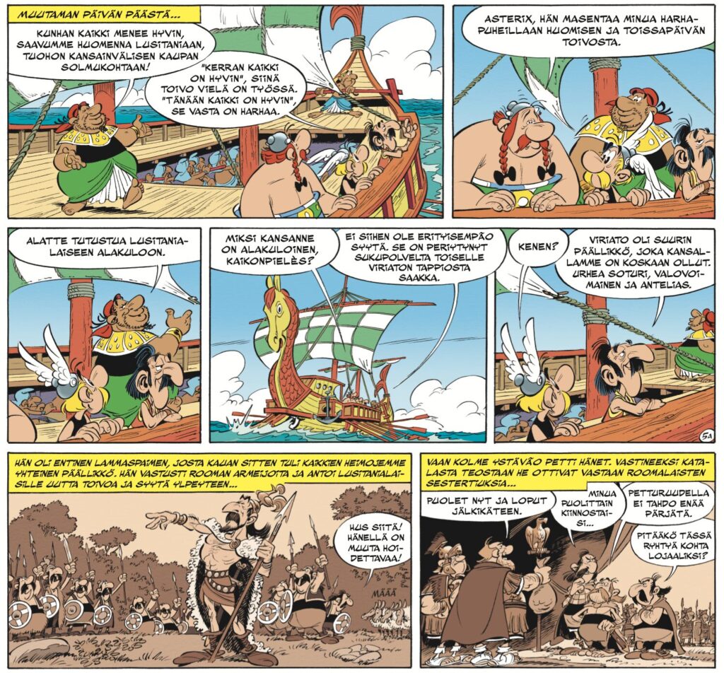 Uusi Asterix on aina iso juttu sarjakuvamaailmassa. Asterix Lusitaniassa ei tee poikkeusta sääntöön. Sitä on odotettu jännityksellä ja jälleen kerran se oli yksi Helsingin Kirjamessujen hittituotteista. Allekirjoittanut rupatteli messuilla hetken erään sarjakuvakauppiaan tiskillä ja 41. Asterix seikkailee lennähteli ahkerasti asiakkaiden hellään huomaan. Tekijätiimi on edeltävästäkin seikkailusta tuttu Fabcaro ja Didier Conrad. Millaisen hulabaloon herrat ovat tällä kertaa kehitelleet? Se selviää parhaiten albumin lukemalla, mutta seuraavaksi pieni kurkistus sen kansien väliin.