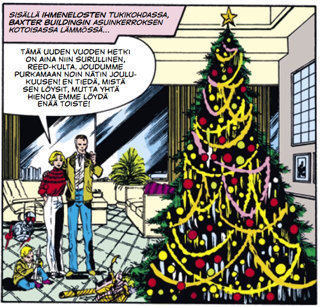 Vuoden 2025 Marvel-elokuvana loisti Fantastic Four eli Ihmeneloset. Suurtapahtuman kunniaksi Story House Egmont kokosi yksiin kansiin legendaarisen John Byrnen parhaita Ihmenelos-tarinoita. ”Kun kutsuu Galactus” sisältää yli 170 sivua ensiluokkaista supersankariseikkailua, ja vaikka joulun pyhät näissä tarinoissa ohitetaankin, löytyy kirjasta sentään kohtuullisen erikoislaatuinen joulukuusi.