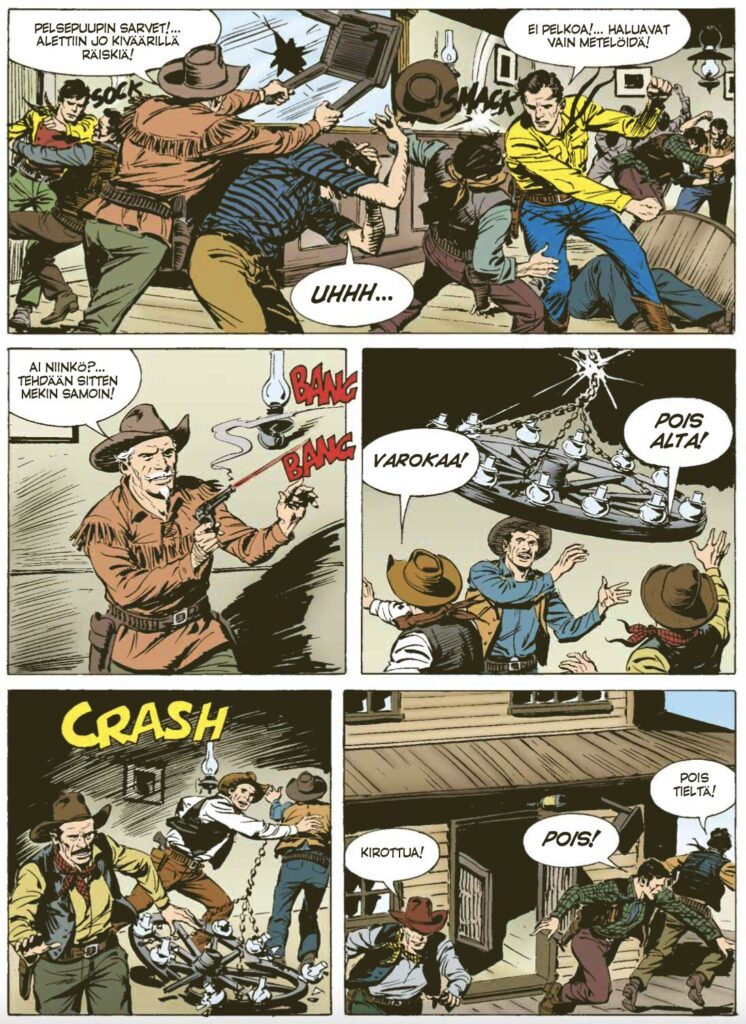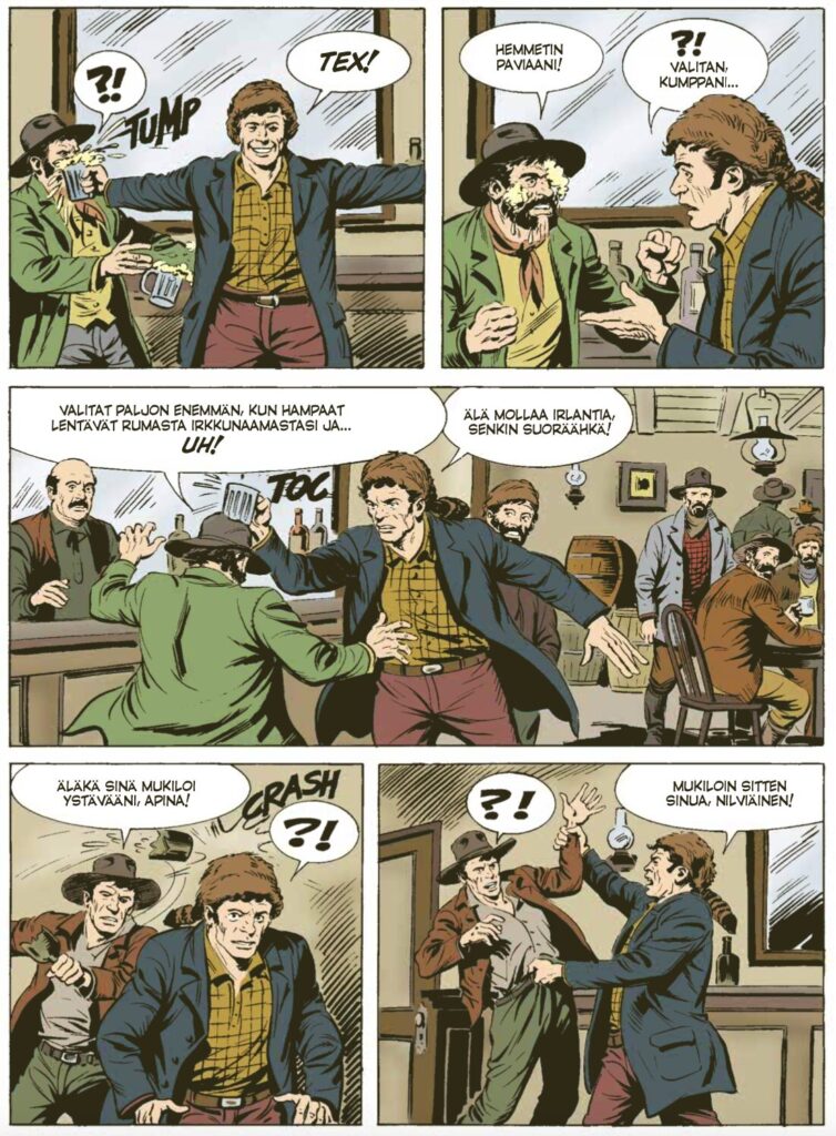 Jotta rusikoimisessa saavutetaan Terence Hillin ja Bud Spencerin tuotantoa haastavat mittasuhteet, niin Bonelli ja Niccolò marssittavat estradille myös Pat MacRyanin. Selviö siis on, että Tex ja kumppanit eivät tämän tarinan puitteissa astu yhteenkään kapakkaan ilman isoksi nujakaksi eskaloituvaa sanaharkkaa.