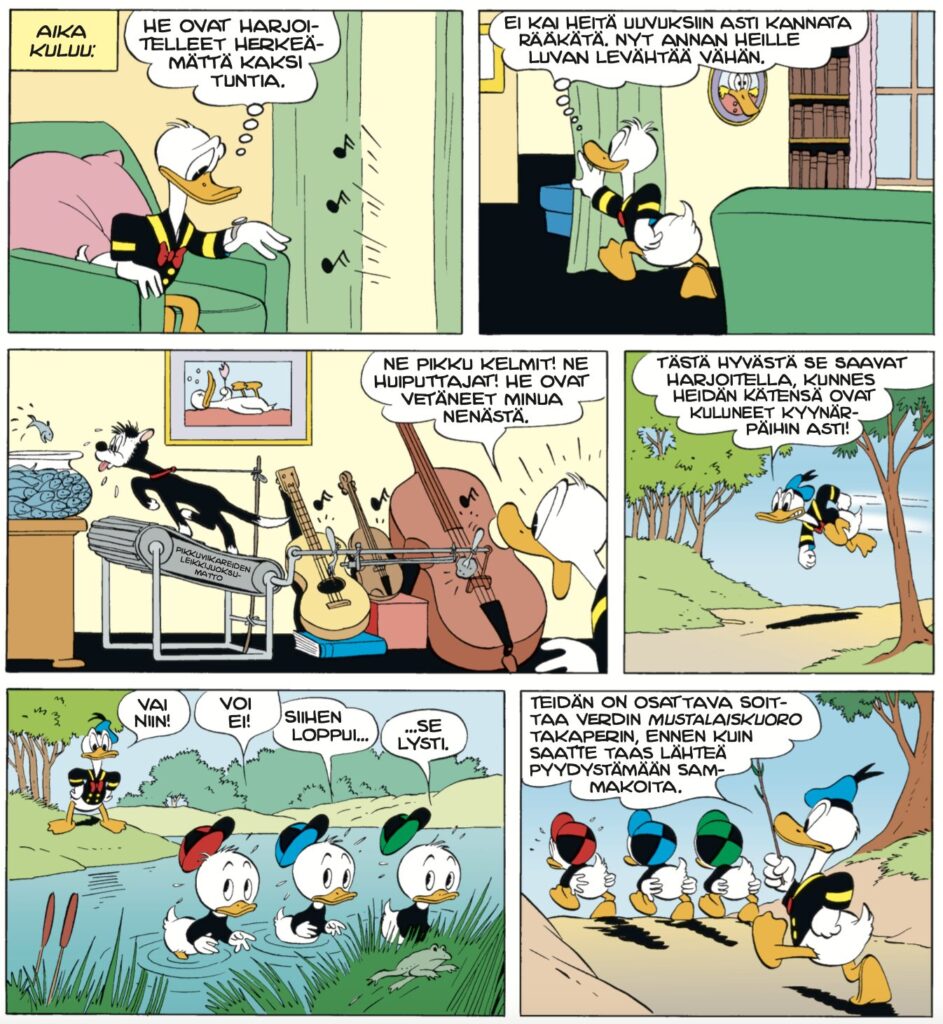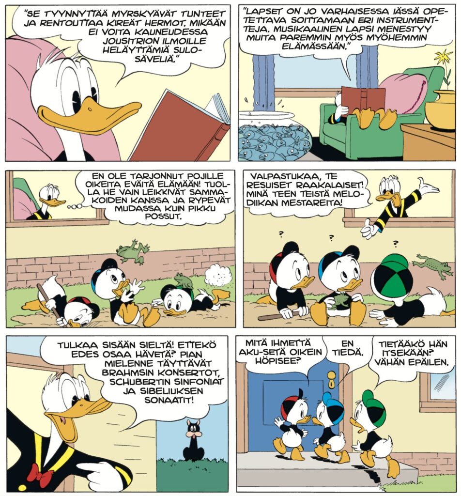 Surkeat soittoniekat (The Masters of Melody) toimii tämän albumin alkusoittona. Aku haluaa vain parasta ankanpojille ja tällä kertaa se paras on soittotaito. Tämän tarinan lähtökohdat ovat jopa aidon kasvatukselliset, eli Akun toivoo todellakin onnistuvan aikeissaan.