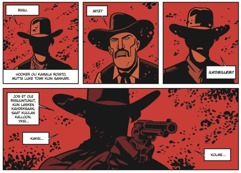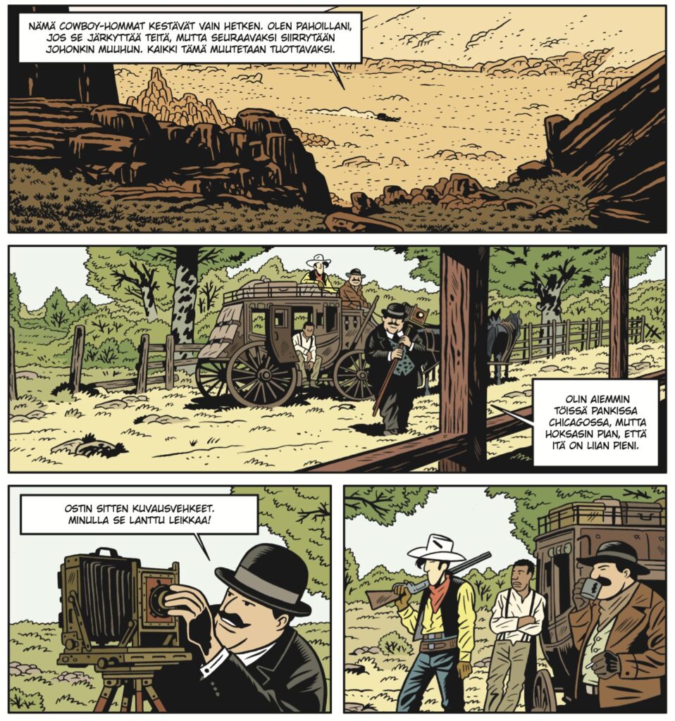 Tätä blogia lukeville lännenelokuvien ystäville sellainen vinkki, että jos The Ballad of Buster Scruggs (2018), The Homesman (2014) tai Sistersin veljekset (2018) kolahtivat tai kiehtoivat, niin tämä on juuri sinulle tehty sarjakuva. Jos elokuvat ovat jääneet näkemättä, niin kyseessä on melankolinen ja mustan huumorin sävyttämä tutkielma sankaruudesta ja yhden aikakauden lopusta.