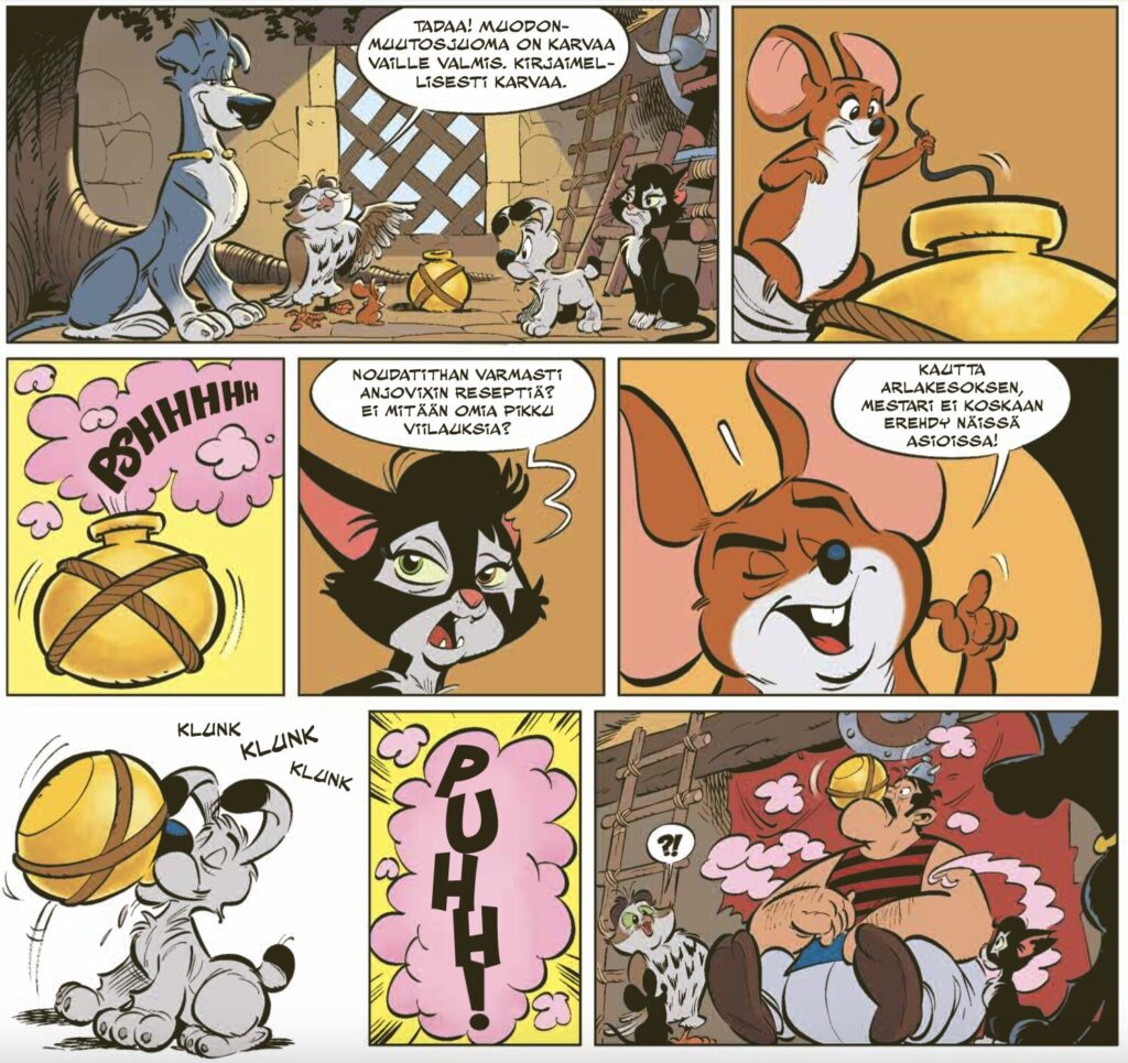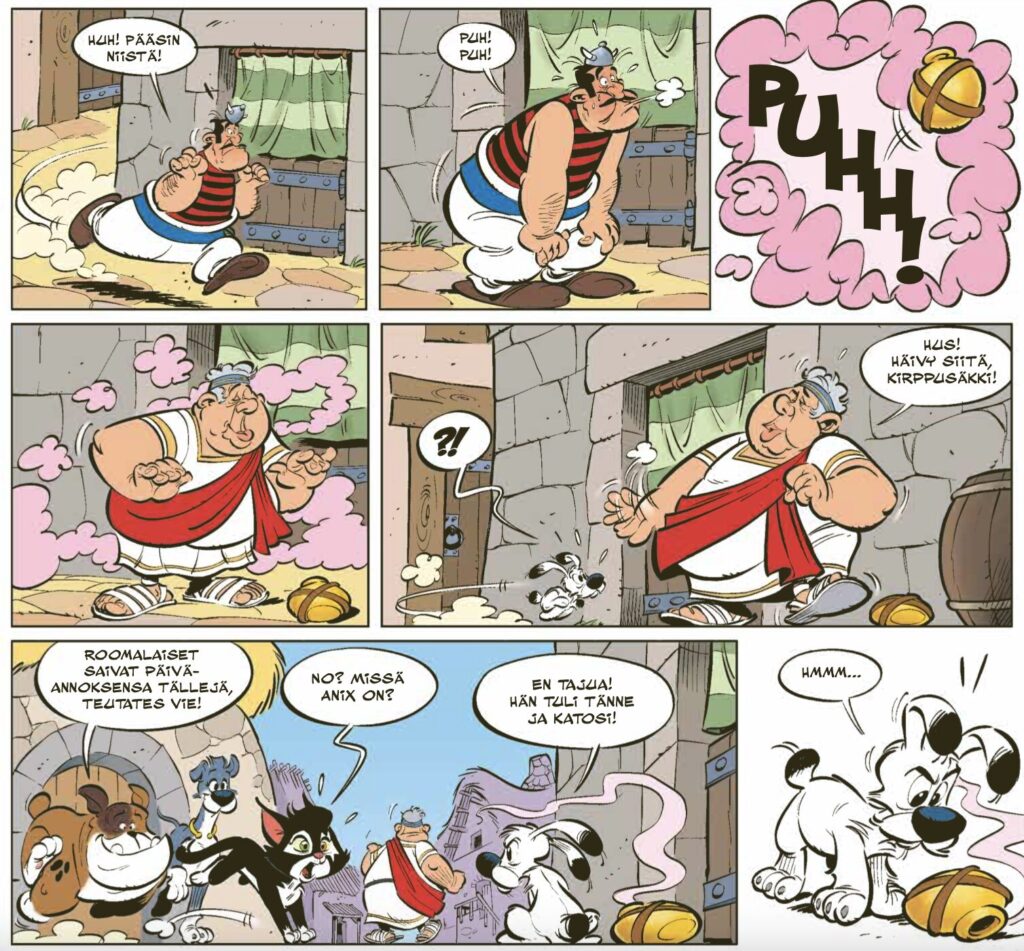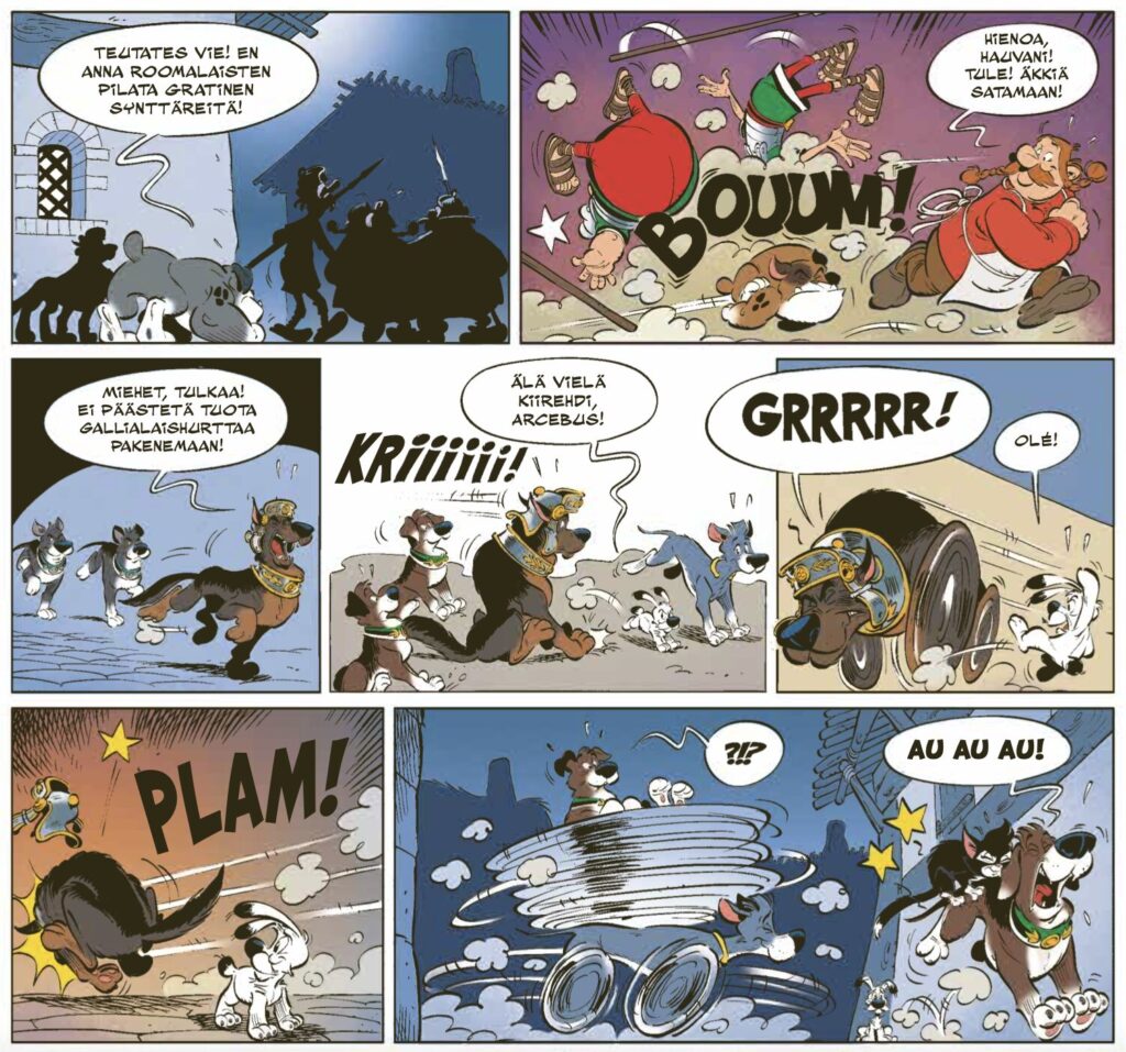Idefixin ja eläinkamujen kärhämöinti roomalaisten kanssa jatkuu kiivaana. On siis jo seitsemännen albumin vuoro johdattaa seuraava sukupolvi sarjakuvanlukijoita Asterixin ja kumppanien ihmeelliseen maailmaan. Idefix ja Voittamattomat: Hämärähommia on ladattu kolmella lyhyellä ja lapsiyleisölle sopivalla seikkailulla. Luodaanpa siis pieni silmäys sen kansien väliin!