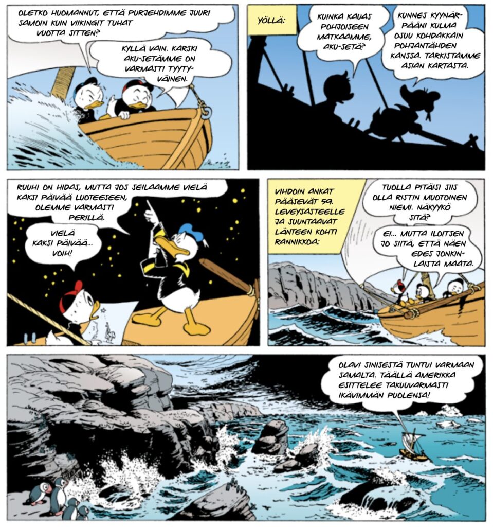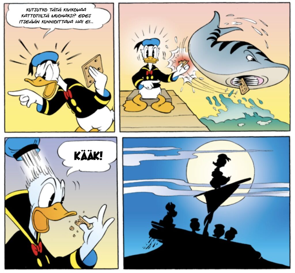 Suomalaisia lukijoita silitetään myötäkarvaan tarjoamalla sokerina pohjalla Kari Korhosen tunnelmapala Ruutuelämää (A Life in Panels, 2021). Siitä nauttiakseen joutuu kaivamaan esiin Aku Ankan 24/2021 tai hankkimaan tämän opuksen, eli emme tarjoile siitä maistiaista tämän sarjakuvahehkutuksen yhteydessä. Ankkalinna 2: Aku Ankka – Satunnainen seikkailija löytyy nyt sarjakuvakaupoista kautta maan. Ja tietenkin myös verkkokaupastamme. Sarjan ensimmäistä osaa ei kannata myöskään unohtaa