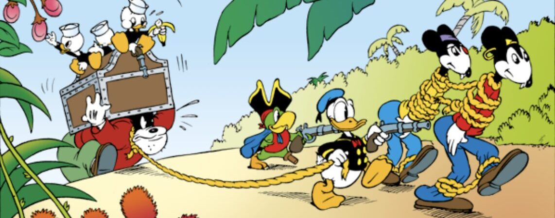 Avaruuden jälkeen suuntaamme Karibialle. Bob Karp, Carl Barks ja Jack Hanna johdattavat Akun ja ankanpojat aarrejahtiin. Vanha Keltanokka aarrekarttoineen toimii liikkeelle panevana voimana ja Musta Pekka kätyreineen kapuloi rattaita minkä kykenee. Merirosvon kulta (Donald Duck finds Pirate Gold, 1942) on erityisen mielenkiintoinen seikkailu siinä mielessä, että sen sivuilla animaattorit ottavat haltuunsa sarjakuvakerrontaa. 64 sivua tulee siis käytettyä hieman hapuillen, sillä lopputulos on yhä turhan kuvakäsikirjoitusmainen, mutta tämä oli silti lähtölaukaus Barksin uralle pitkien Aku-seikkailujen erikoismiehenä ja sen myötä seikkailu ansaitseen paikkansa tämän kokoelman sivuilla.