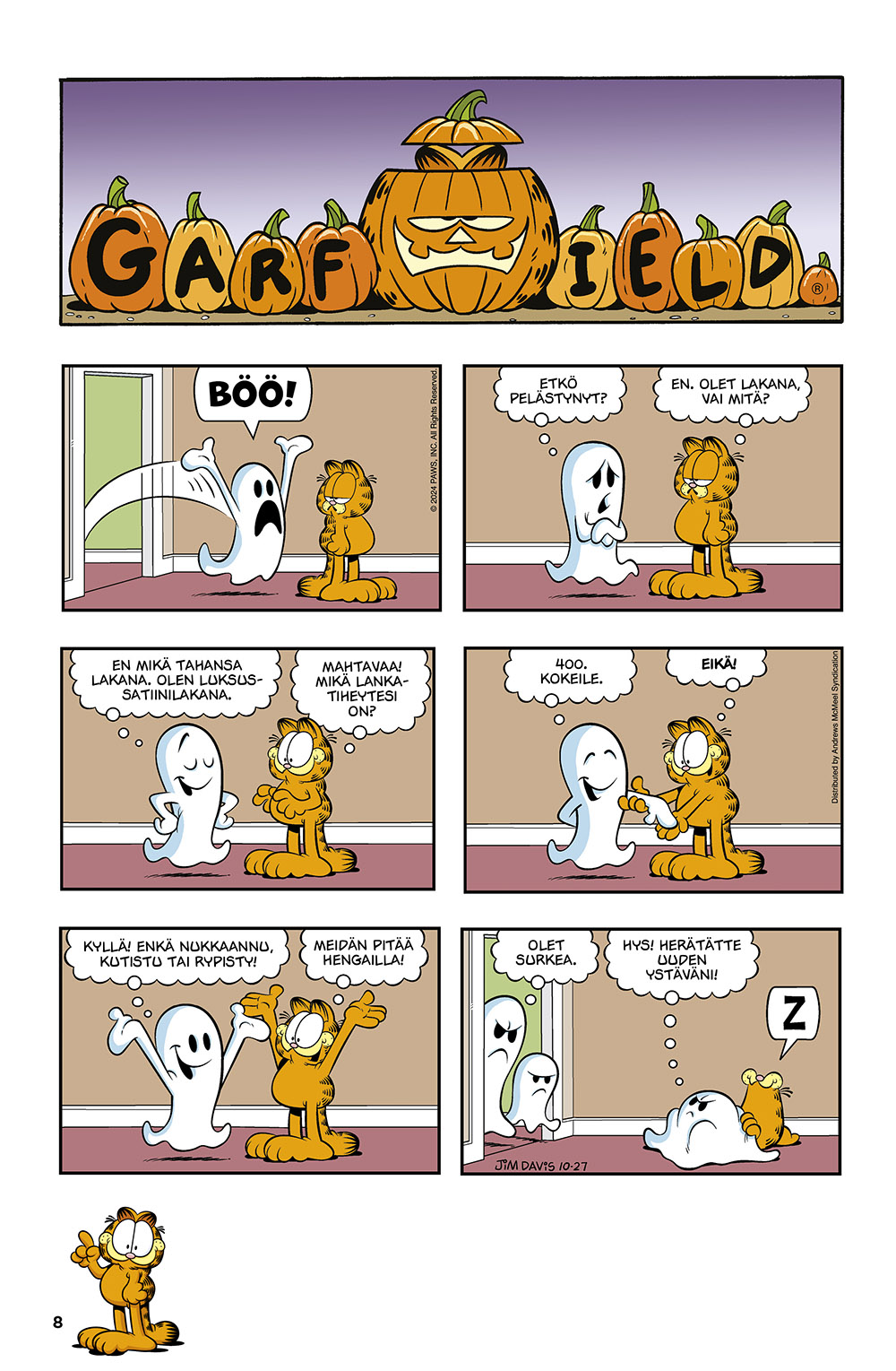 Tervetuloa pitämään hauskaa Karvisen ja kumppaneiden seurassa! Garfield on viihdyttävä sarjakuvalehti, joka tarjoaa hulvatonta huumoria etenkin kissojen ystäville ja kaikille niille, jotka eivät erityisemmin pidä maanantaista tai kuntoilusta.