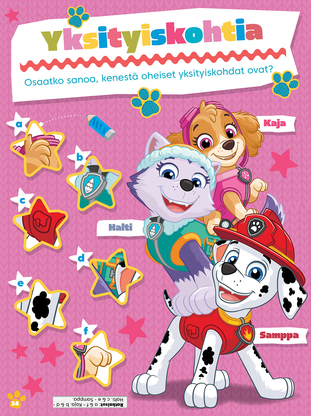 Jokaisessa Paw Patrol -lehdessä on mukana upea Ryhmä Hau -aiheinen liitelahja lapsen leikkejä rikastuttamaan sekä tarra-arkki, jonka tarroista osa on tarkoitettu käytettäväksi lehden tehtävien yhteydessä ja osa oman valinnan mukaan hyödynnettäväksi.