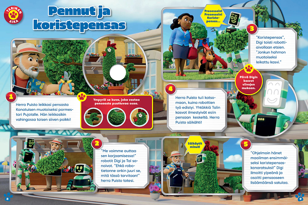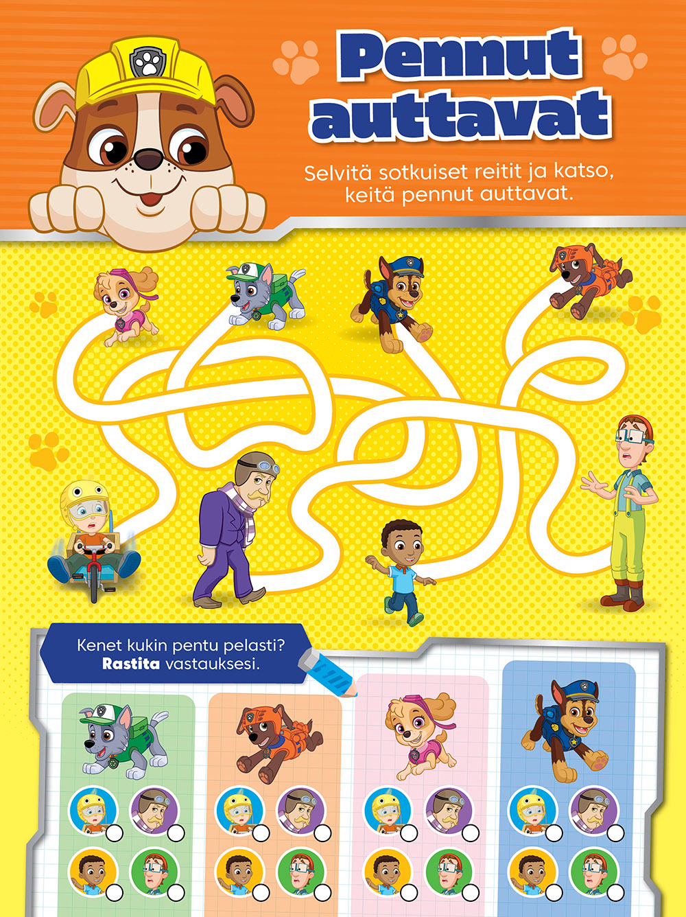 Televisiosta tutut Paw Patrolin pennut seikkailevat omassa Ryhmä Hau -lehdessään! Reipas Riku-poika kutsuu pennut pentupadillaan Vahtitornille aina, kun joku Jännälahden asukkaista joutuu pulaan tai jossain tapahtuu jokin onnettomuus. Yhteistyöllä Samppa, Kaja, Toma, Vainu, Rekku ja Rolle auttavat niin Jännälahden pormestari Pujolaa, maanviljelijä Taimia, kauppias Totteria, eläinhoitolan Katia Hali-kissoineen, Kampela-aluksellaan liikkuvaa kapteeni Turpoa kuin kieroja temppuja keksivää naapurikaupungin pormestari Hanttistakin.