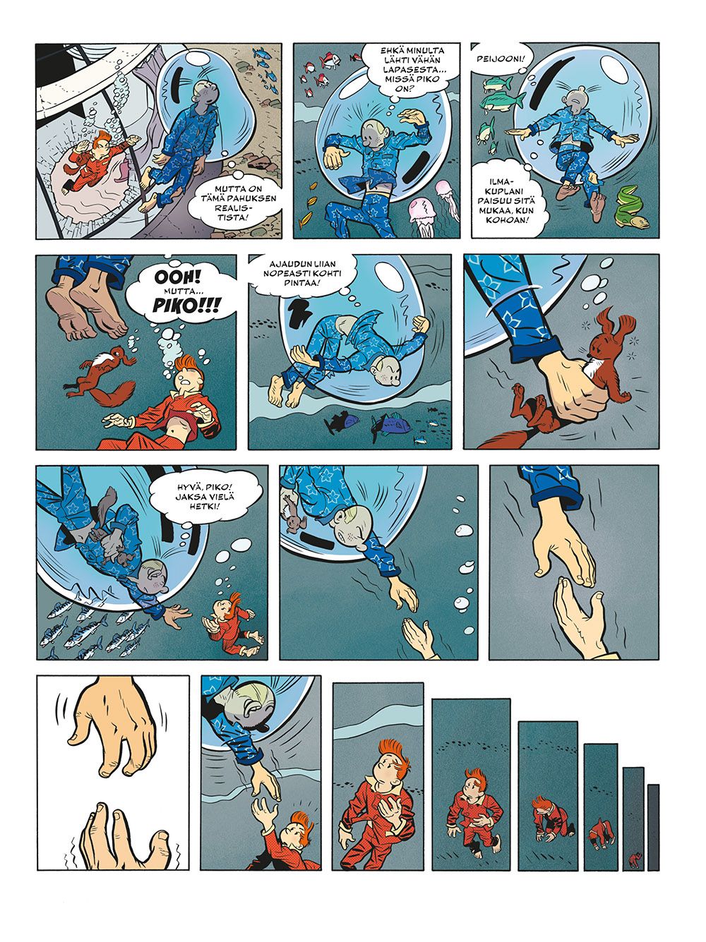 Tuote ilmestyy 15.10.2025Onko tämä Pikon viimeinen seikkailu? Piko ja Fantasio päätyvät meren syvyyksiin saatuaan tietää, että pahamainen tiedemies Zorbul on perustanut sinne turistikeskuksen. Upeasti piirretty huima sarjakuva, jonka loppu vie lukijoilta jalat alta!